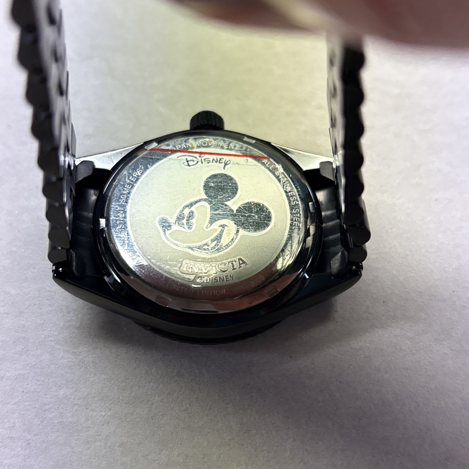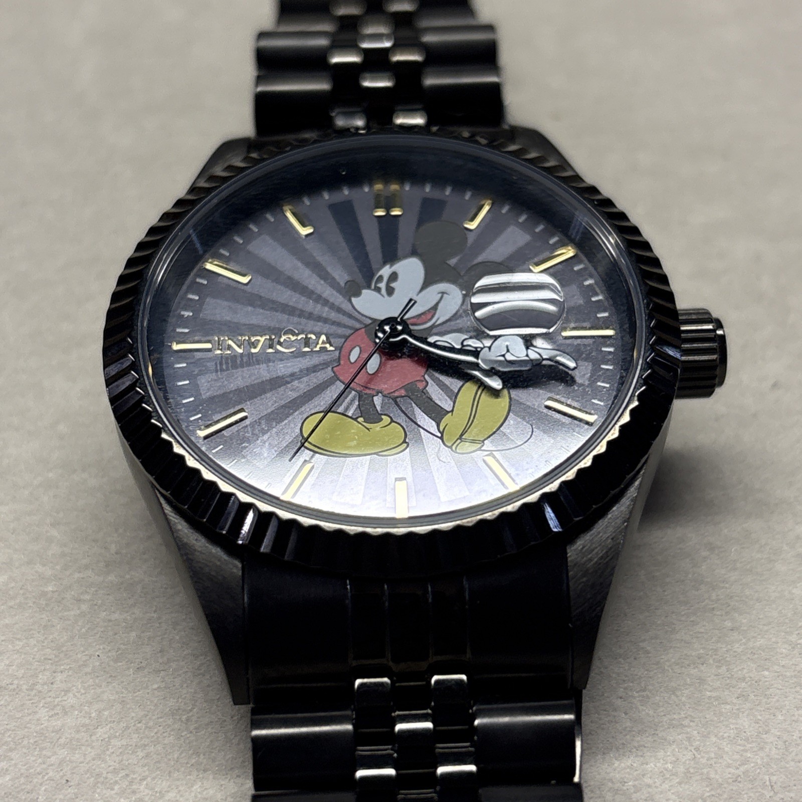 Rare Used Mickey Mouse Invicta Watch Disney Black Quart IN22771. Looks to need a battery as the watch is not moving. Really nice watch