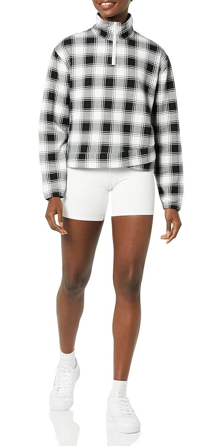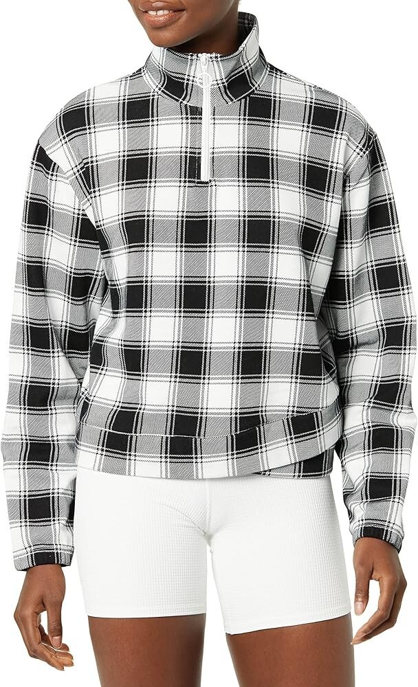 EleVen by Venus Williams One More Time Pullover Women's Size S Black White Plaid