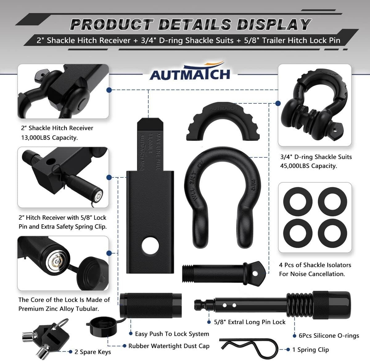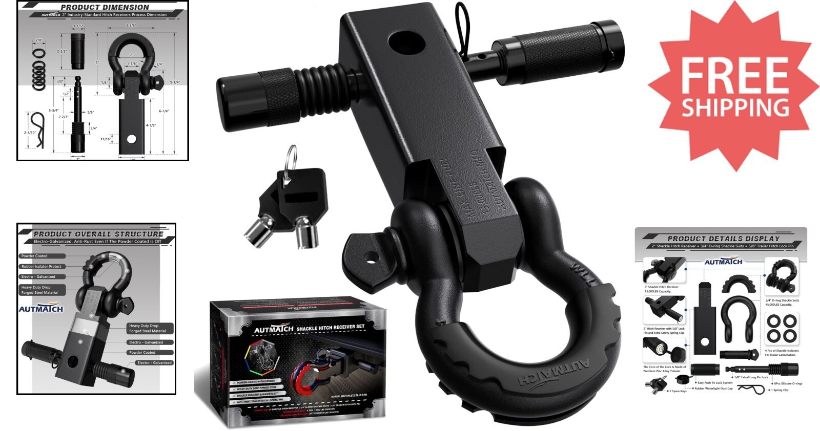 Versatile Heavy Duty Towing Kit - 2-Inch Receiver & 5/8" D-Ring Shackle Included