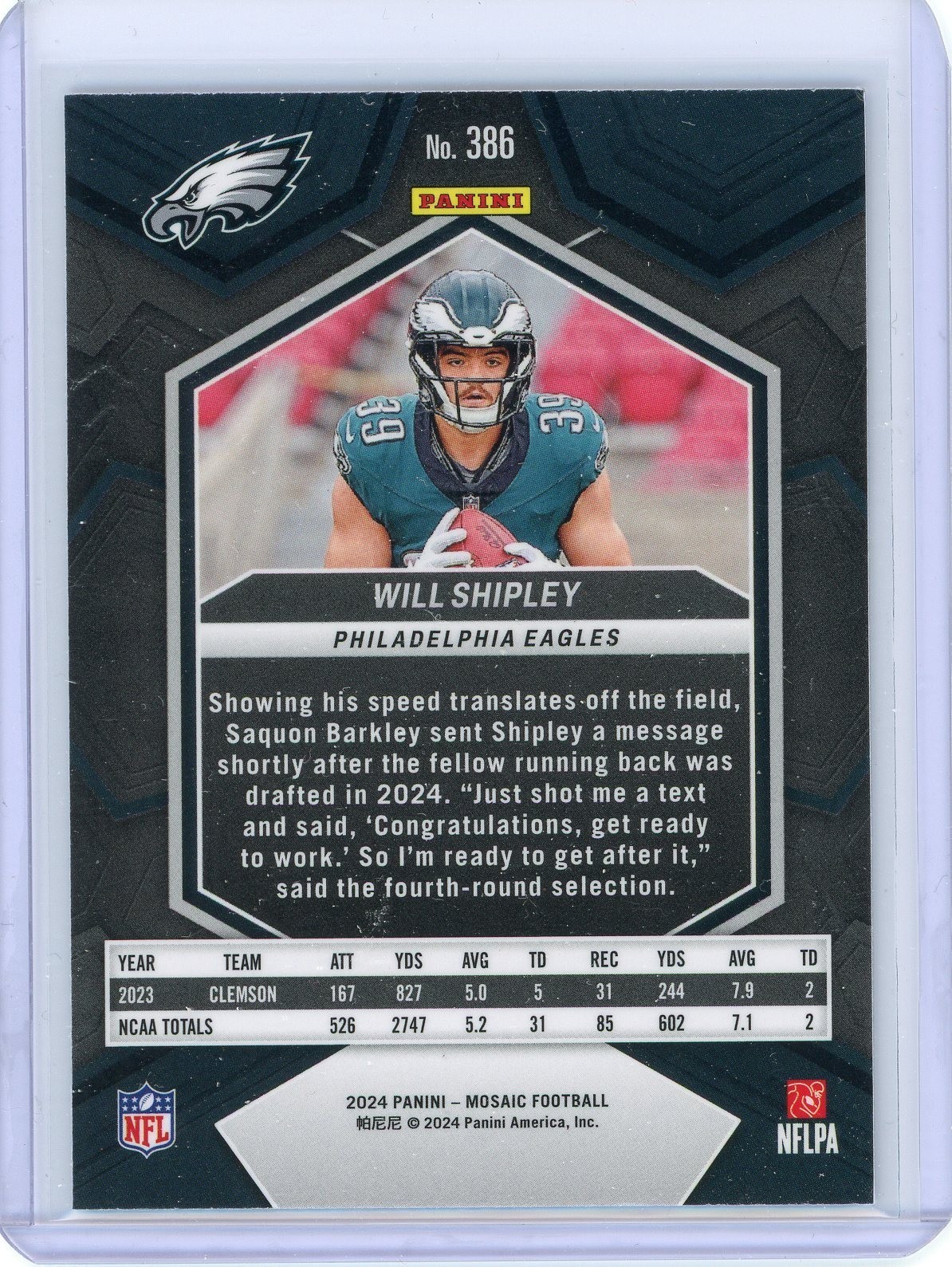 2024 Panini Mosaic Will Shipley Rookie RC #386