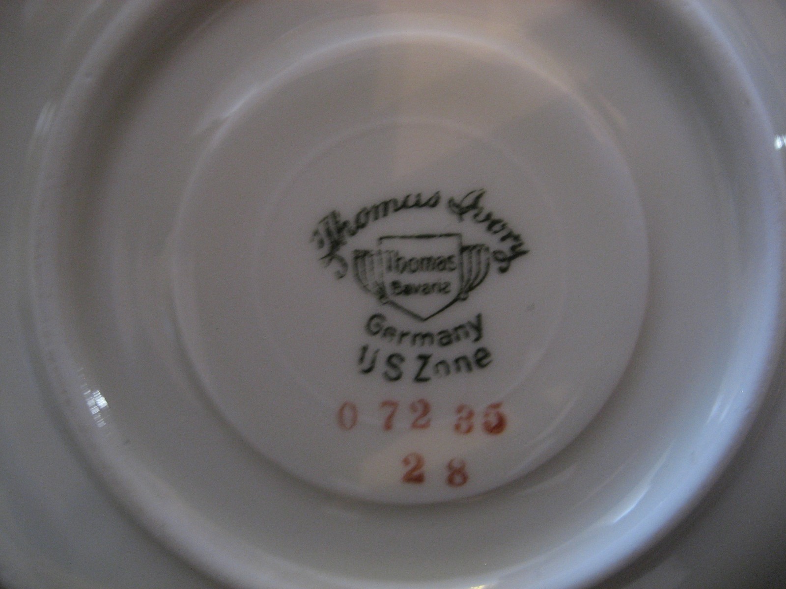 Plato de taza de te de platillo redondo vintage Thomas Ivory Alemania Zona estadounidense 0 72 35 28 (esto esta estampado en la parte inferior) 4.5 "(al otro lado) Este es un platillo muy raro aquí. Condicion: hay algunas chips en la superficie de este (borde exterior), muy pequeño. Mira fotos, seras el juez. Enviara esto gratis para Estados Unidos. Barco internacional por precio.