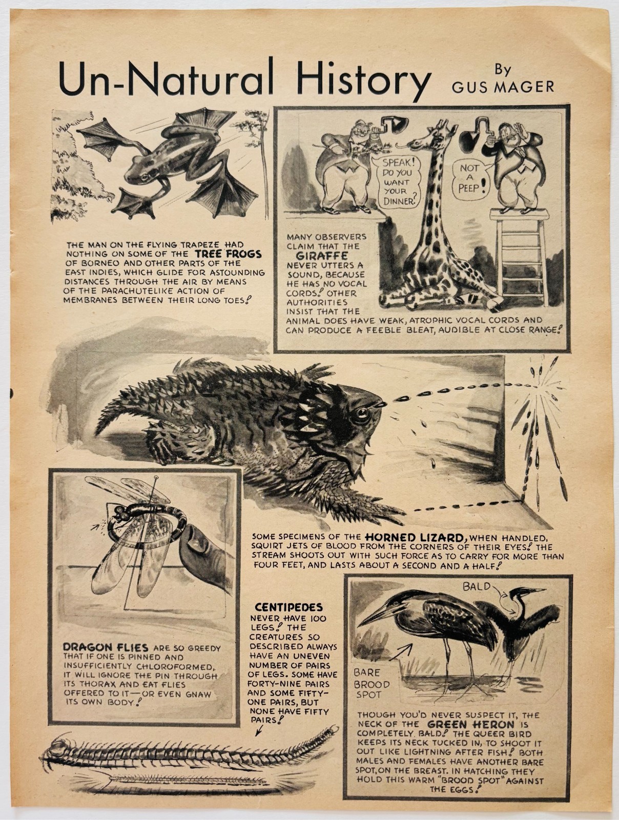 1938 Un-Natural History Horned Lizard Giraffe Popular Science Gus Mager E90F2