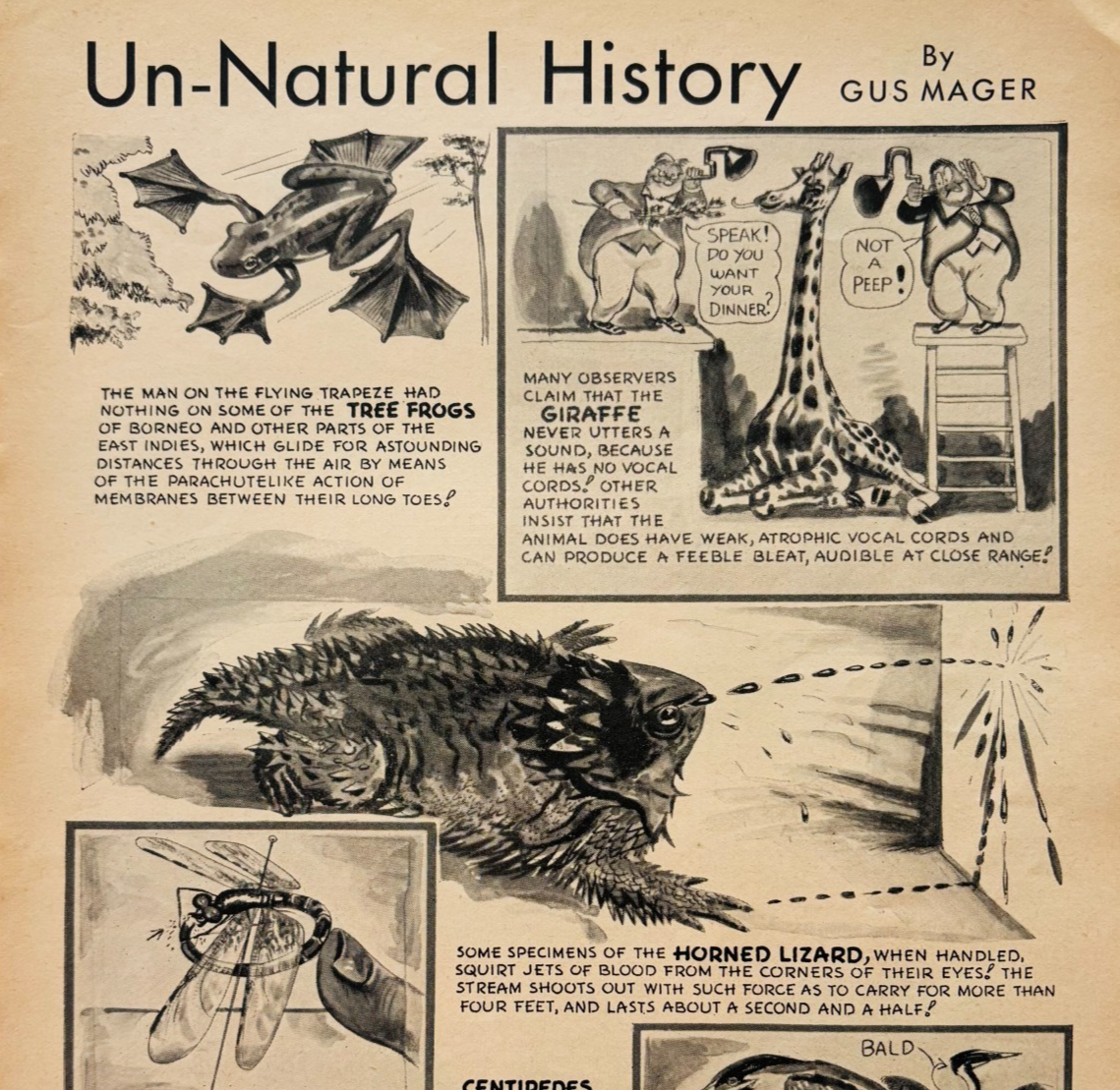 1938 Un-Natural History Horned Lizard Giraffe Popular Science Gus Mager E90F2