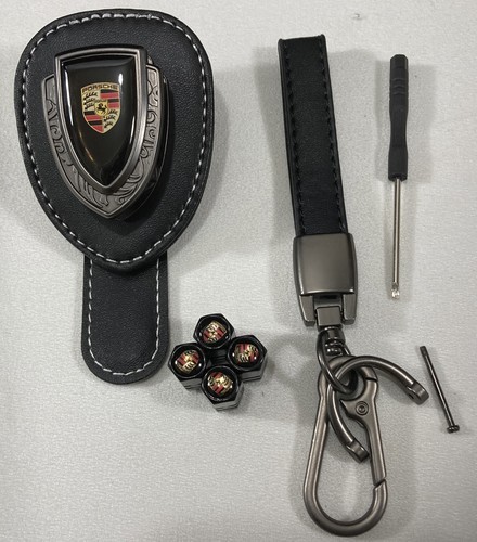 This brand new set includes a Genuine Leather Lanyard and a set of black metal tire stem caps with an extremely well made leather sunvisor glasses clip. This luxurious set is a must-have accessory for any car enthusiast. Made with premium black leather and featuring a clip-on design, this limited edition lanyard is both stylish and practical. The set also includes exclusive Metal Tire Air Stem Valve Covers, adding a touch of luxury to your automotive accessories collection. Add this high-quality set to your Porsche owner's gear now.