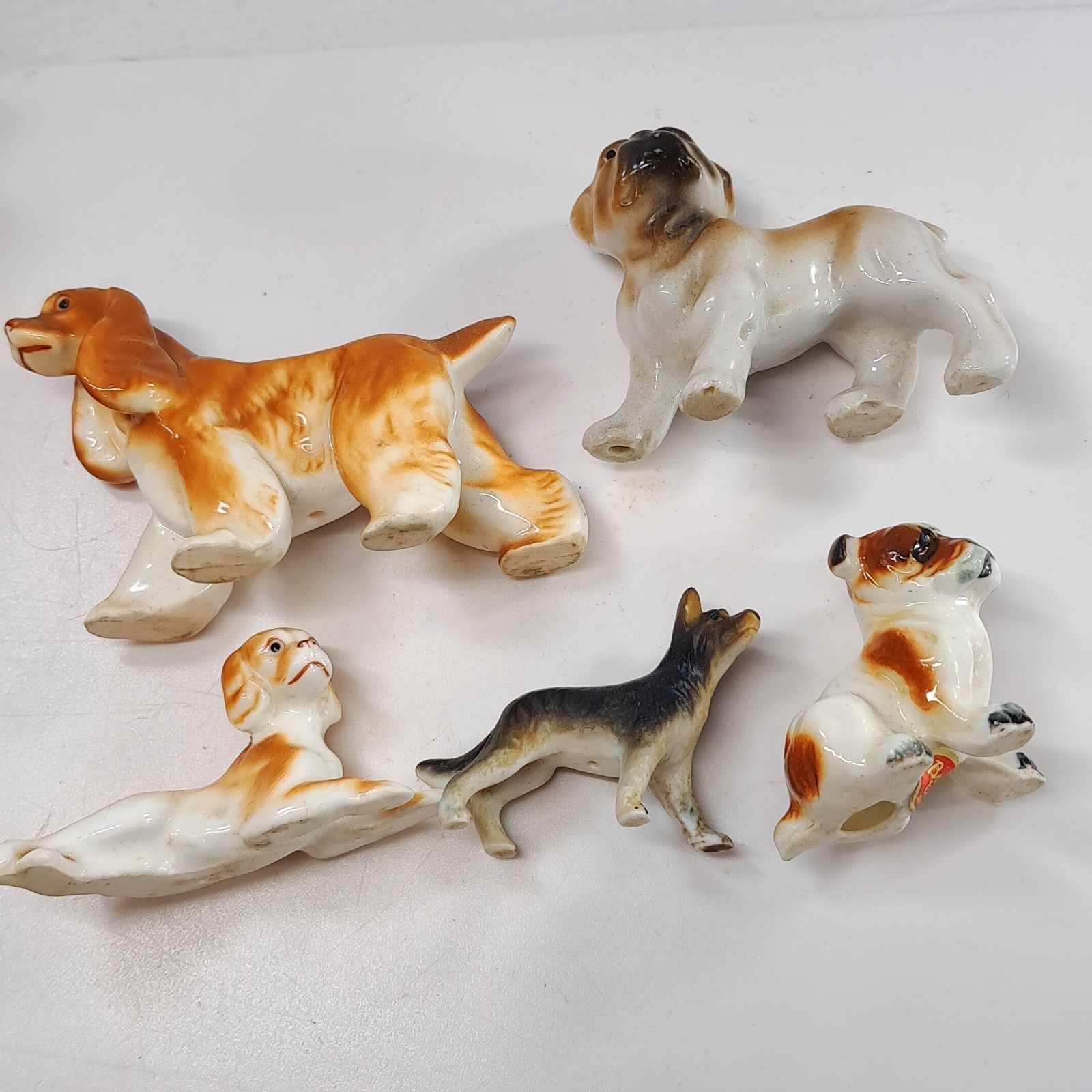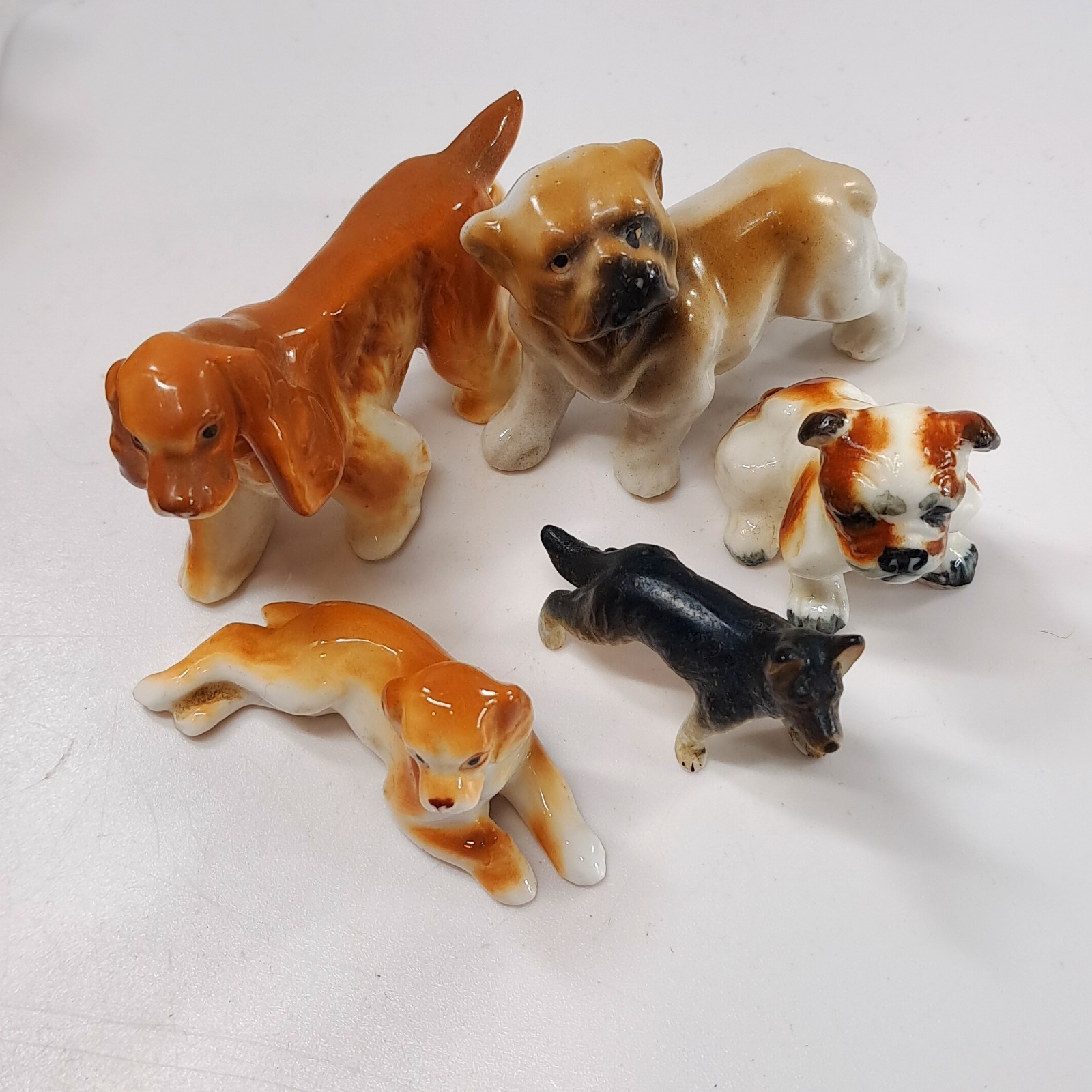 Includes 5 dogs, Only one is marked BONE CHINA. Others may be bone china or porcelain. Includes 2 Cocker spaniels, 2 bull dogs and a German Shepherd. Some minor cosmetic wear as shown.