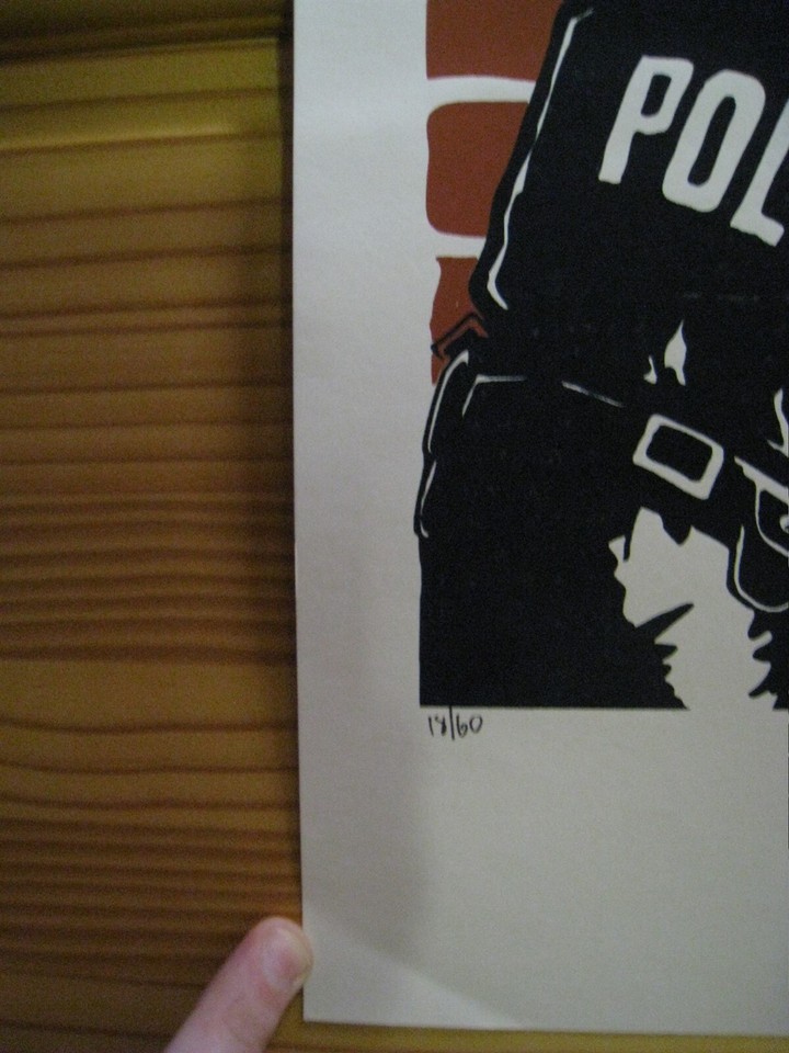 This poster is 12 inches by 24 inches approximately. This is not in mint condition. It has creasing. The poster is signed and numbered by the visual artist Sean Carroll. It is number 18 of 60.