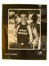 The press kit includes artist information and a review of the album "Just Keni Burke" The press kit photo measures 8 x 10 inches approximately. Has mild face dings on the side, and a tiny corner bend.