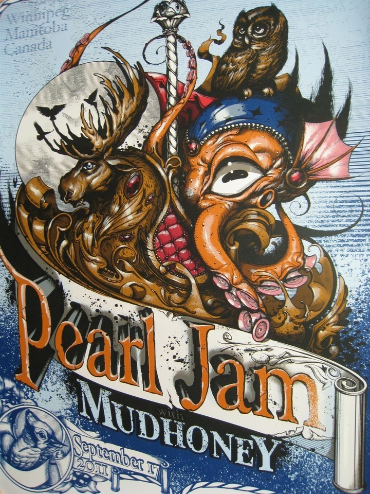 Pearl Jam Poster Mudhoney Mint Silk Screen Winnepeg September 2011