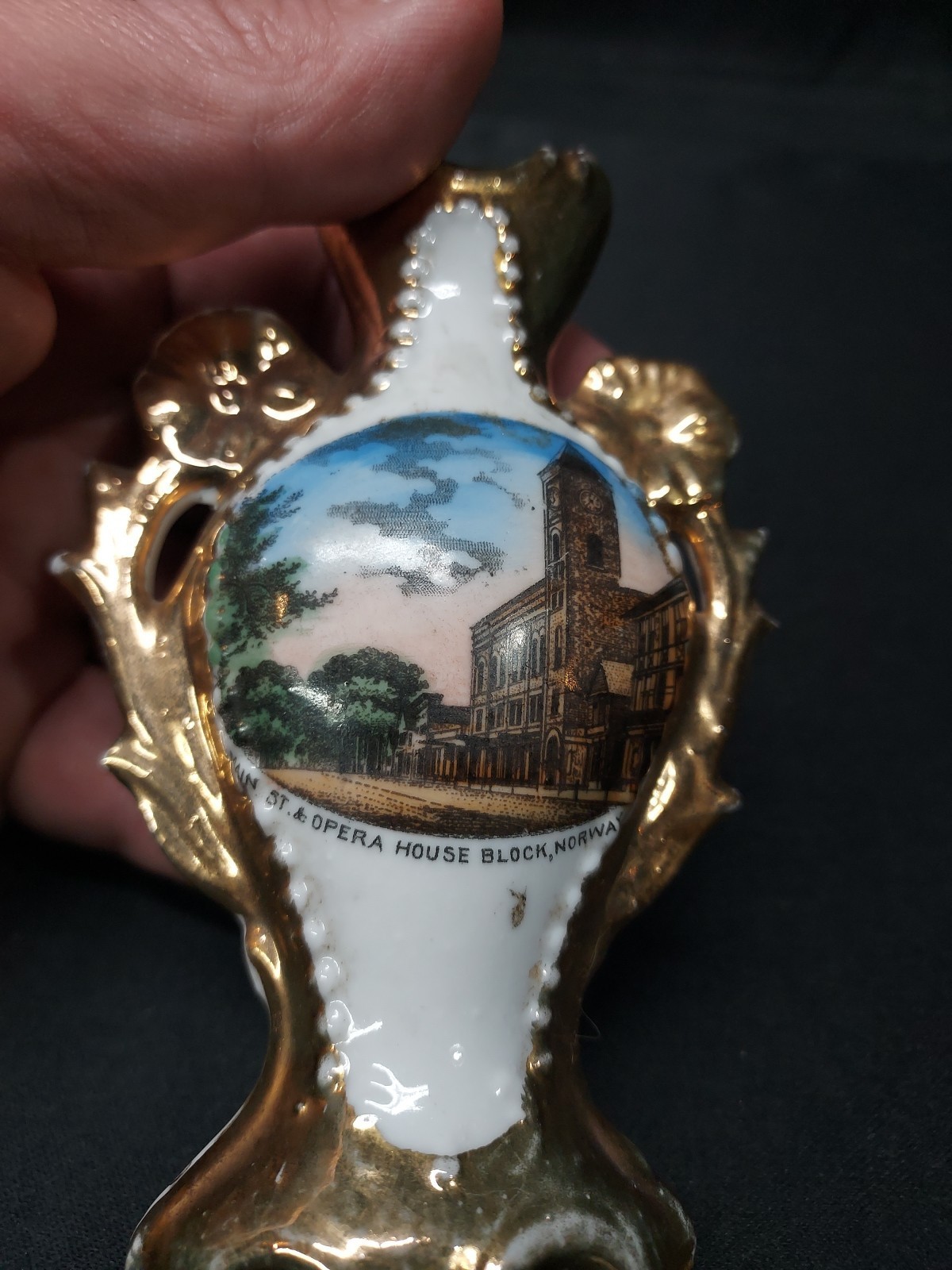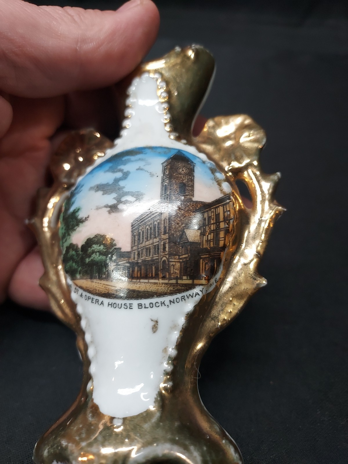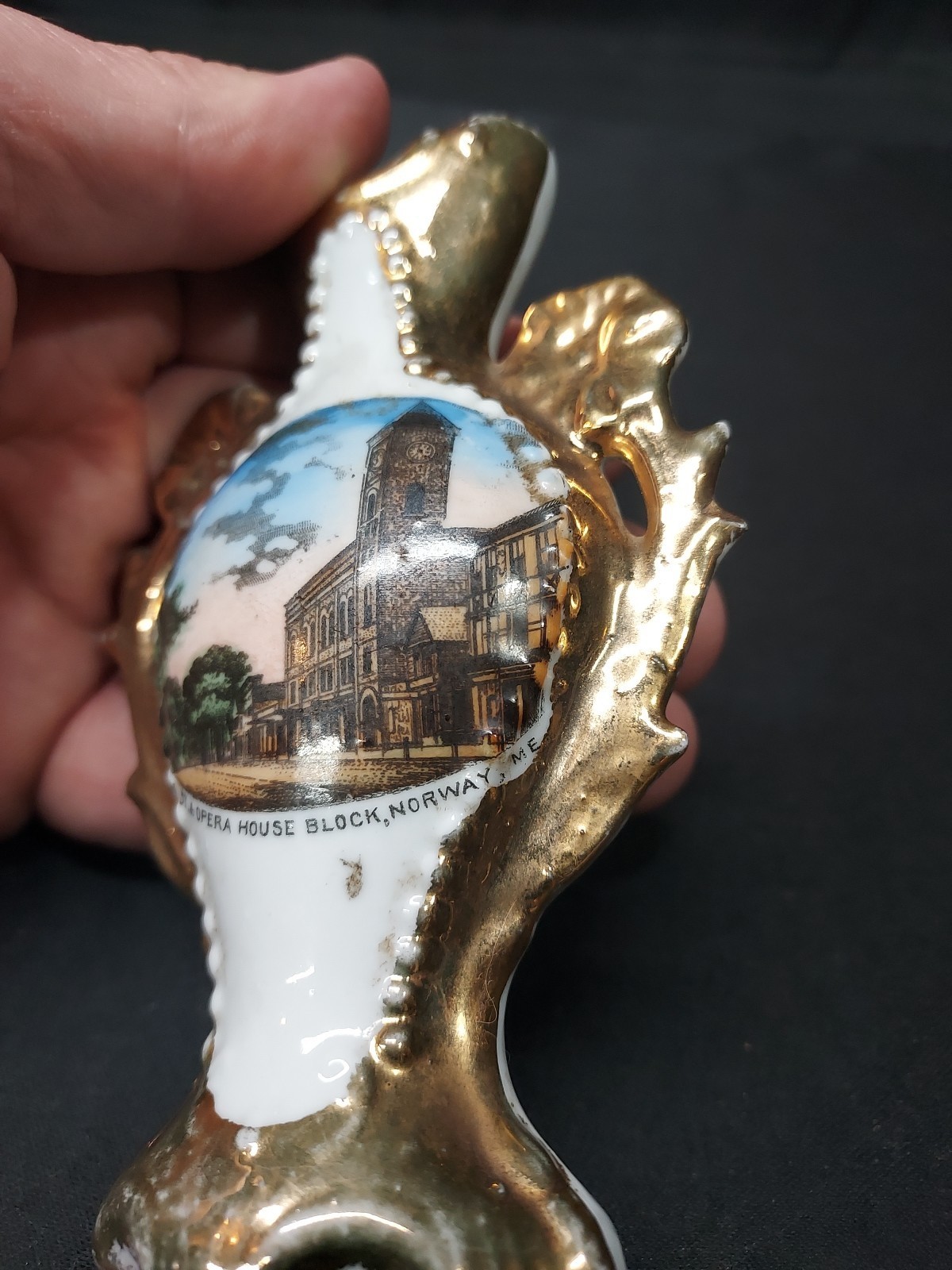 Early 1900s Souvenir Porcelain Vase Opera House Norway Maine