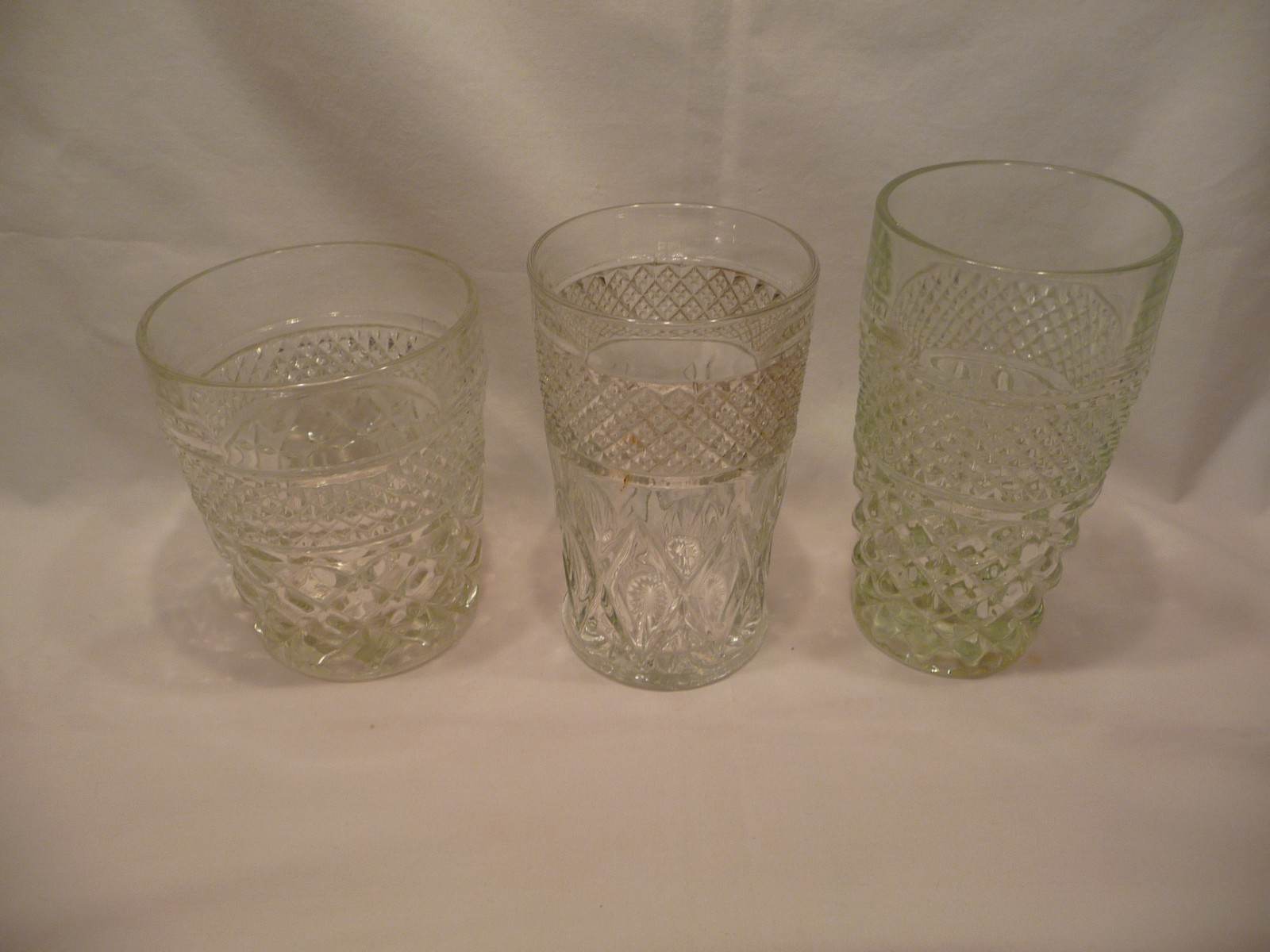 Vintage Clear Cut Glass Drinking Glasses, 3 different designs