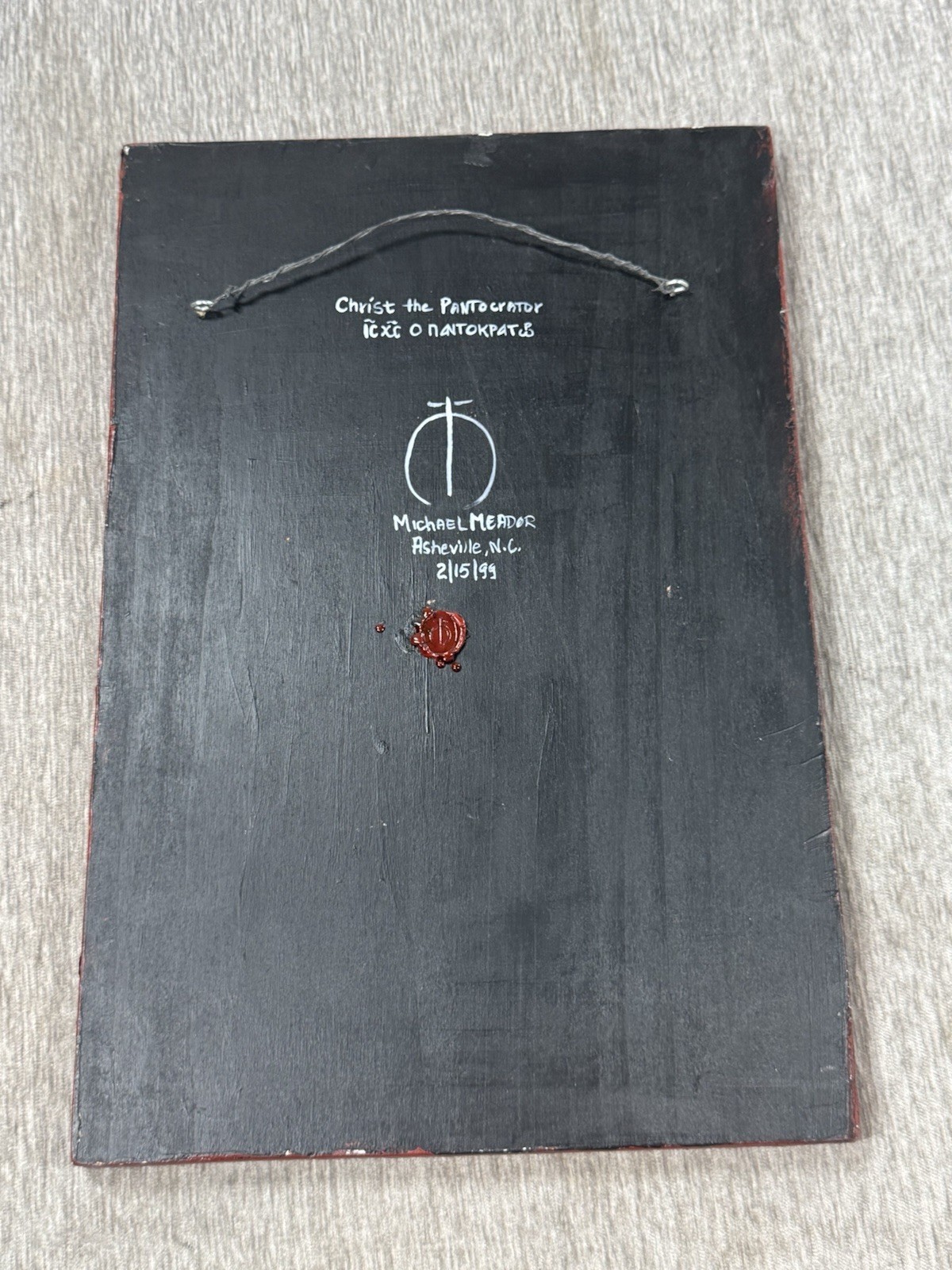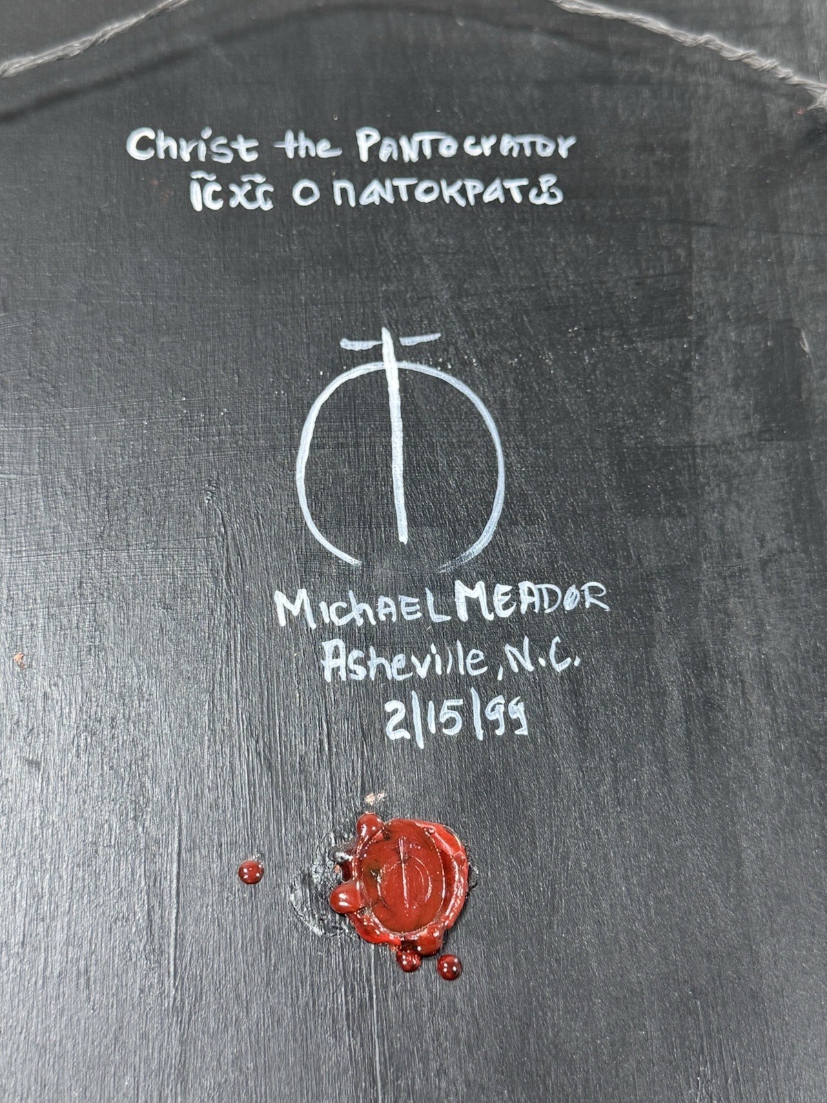 For sale is a Christ Pantocrator Hand Painted Orthodox Icon on Wood - Inscribed and Signed on back, unsure if that is the artist or as a gift to the former owner.