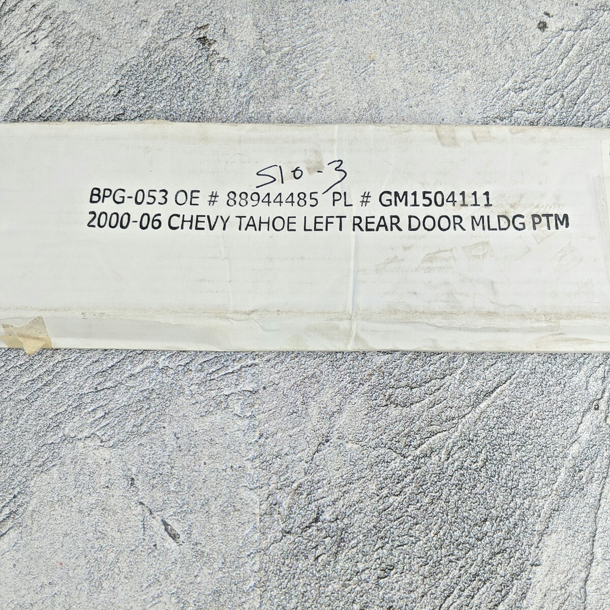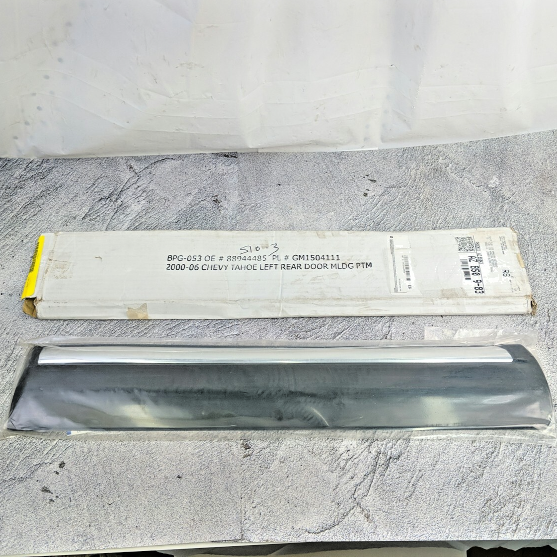 The GM1504111 exterior door molding trim is designed for the 2000-2006 Tahoe model. This trim piece is specifically for the rear left side of the vehicle and comes in a black color with silver accents. It is made of plastic material and measures 24 inches in length. The trim features self-adhesive attachment for easy installation. This product is a genuine OEM part with the manufacturer part number GM1504111 and OE part number 88944485, ensuring a proper fit and quality for your vehicle.