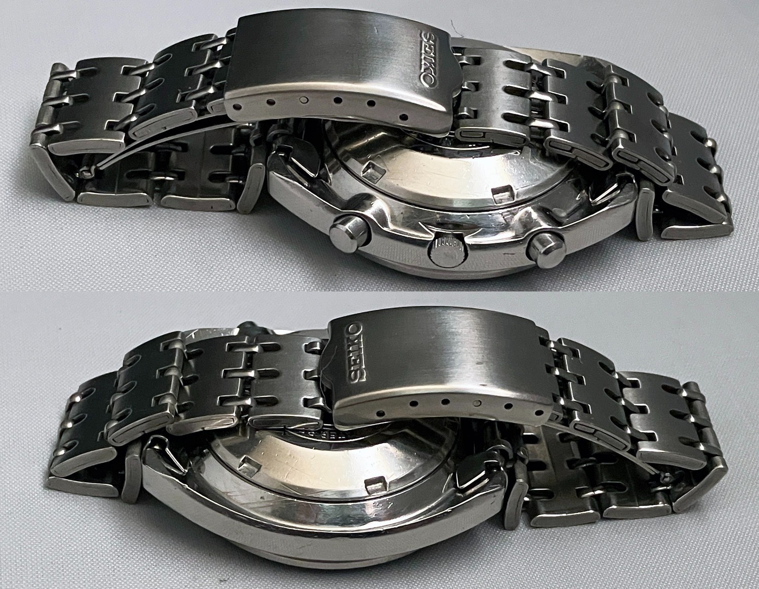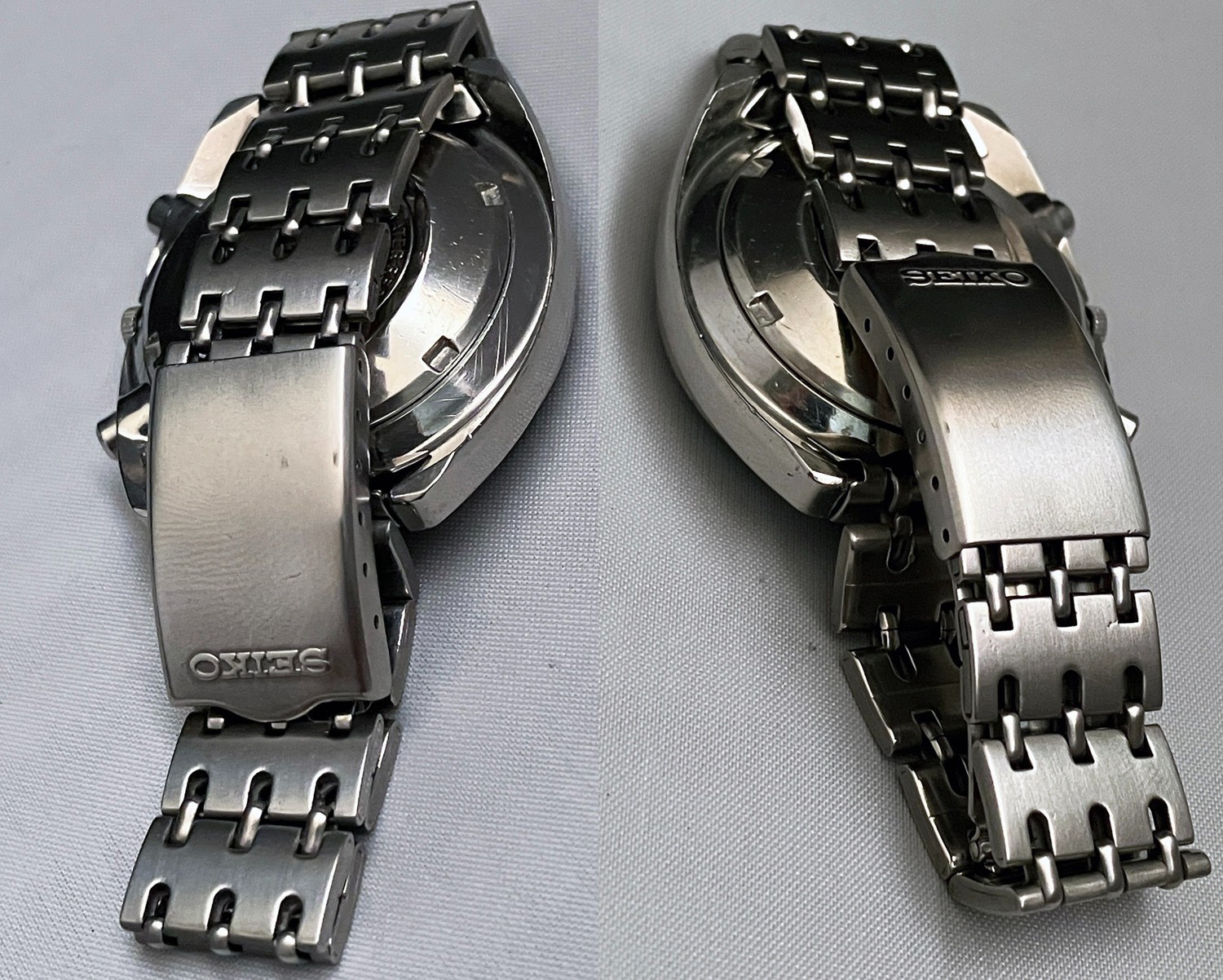 Bracelet marked 'ALL STAINLESS STEEL JAPAN B'.