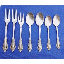 Add elegance to your dining table with this beautiful set of Oneida Community SILVER ARTISTRY Cube Mark Lot 7 Pcs Silverplate Flatware. The intricate floral handle pattern on the silver-plated handles adds a touch of sophistication to any meal. This set includes dinner fork, salad fork, Tablespoon, and teaspoon, perfect for any occasion.