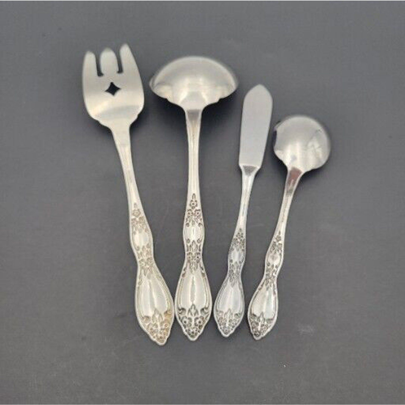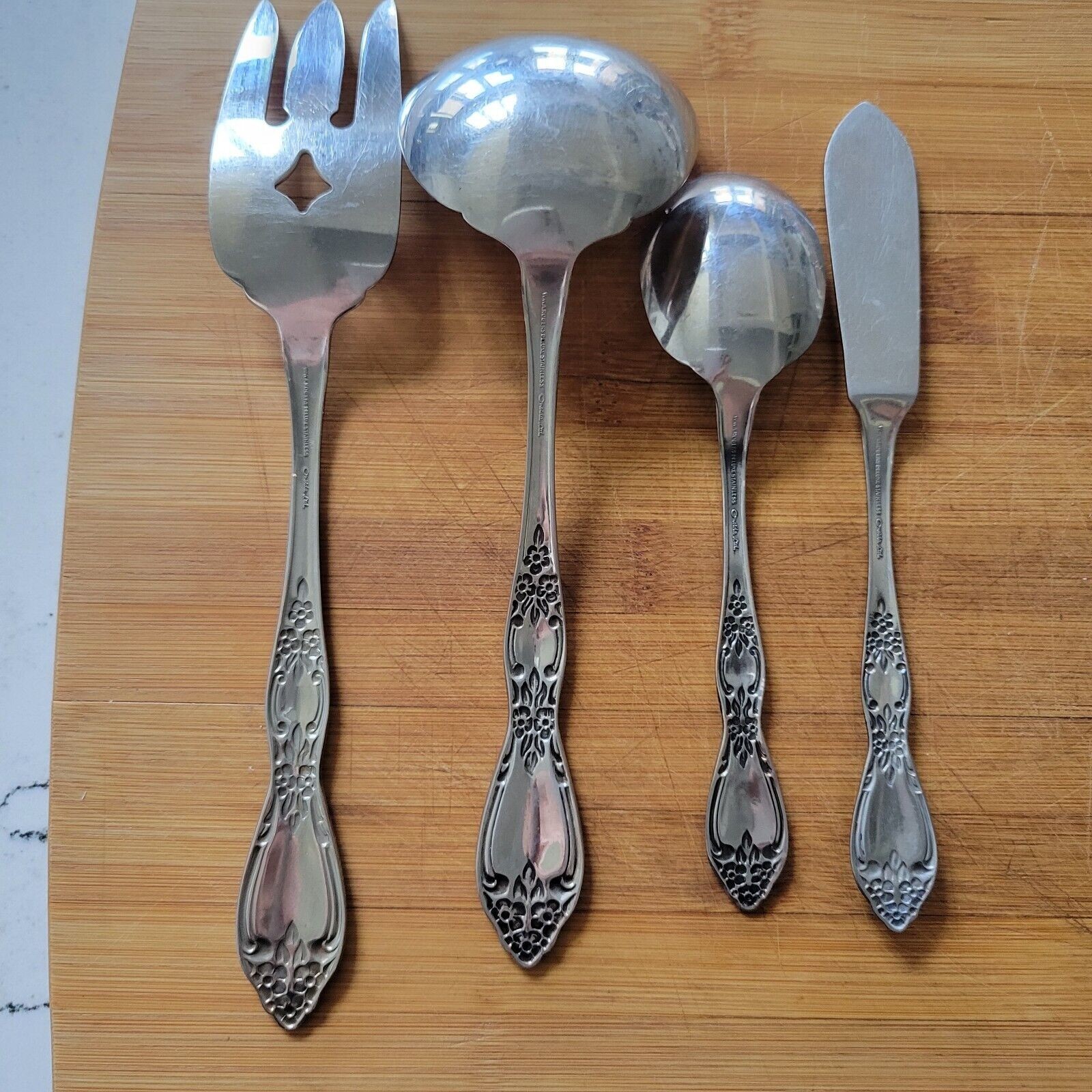 The set is in great shape and has been well taken care of. It is perfect for anyone who wants to add a touch of class to their dining experience. Whether you're hosting a dinner party or just enjoying a family meal, this Vintage Oneida by Rogers Stainless Steel Set of 4 Serving Set is sure to impress.