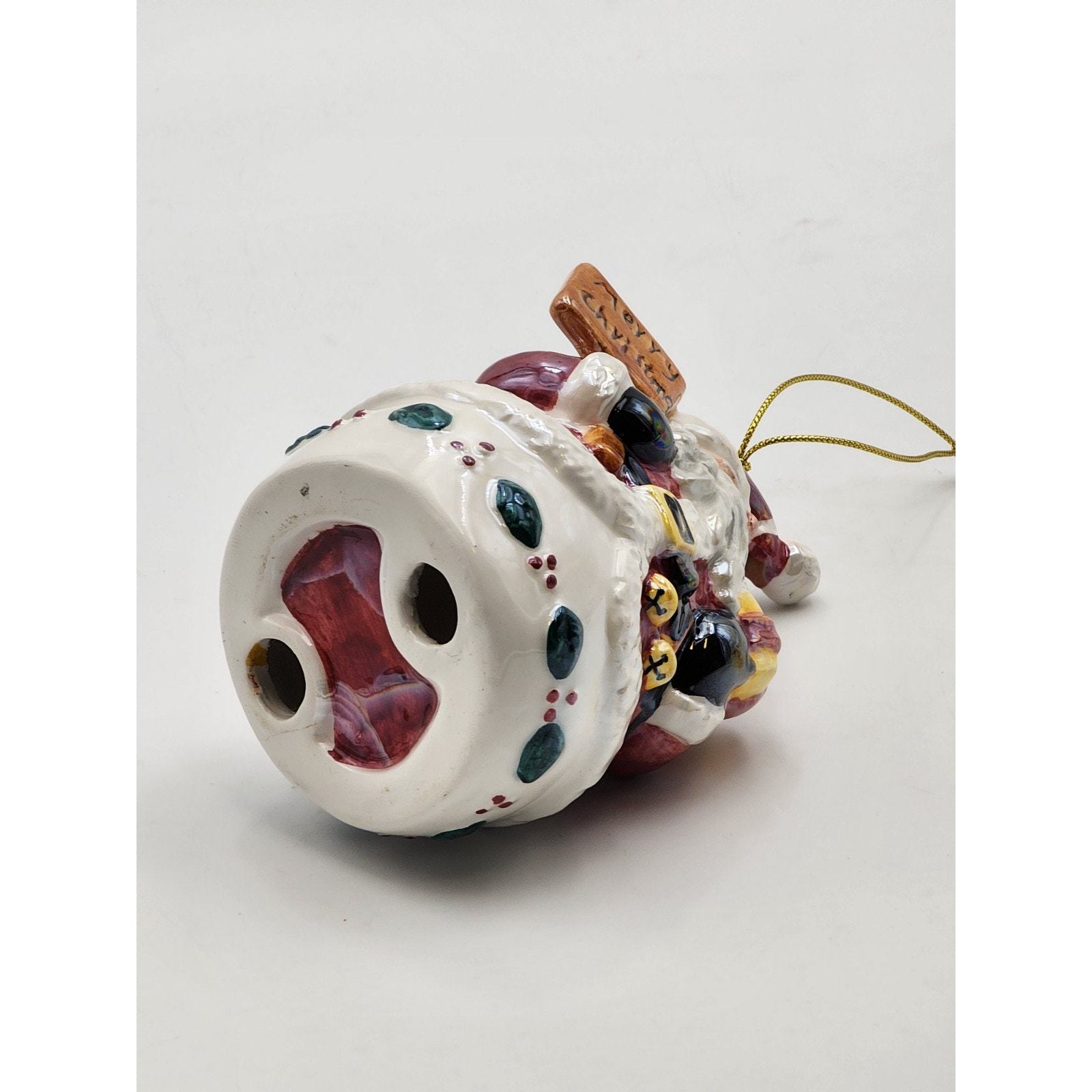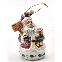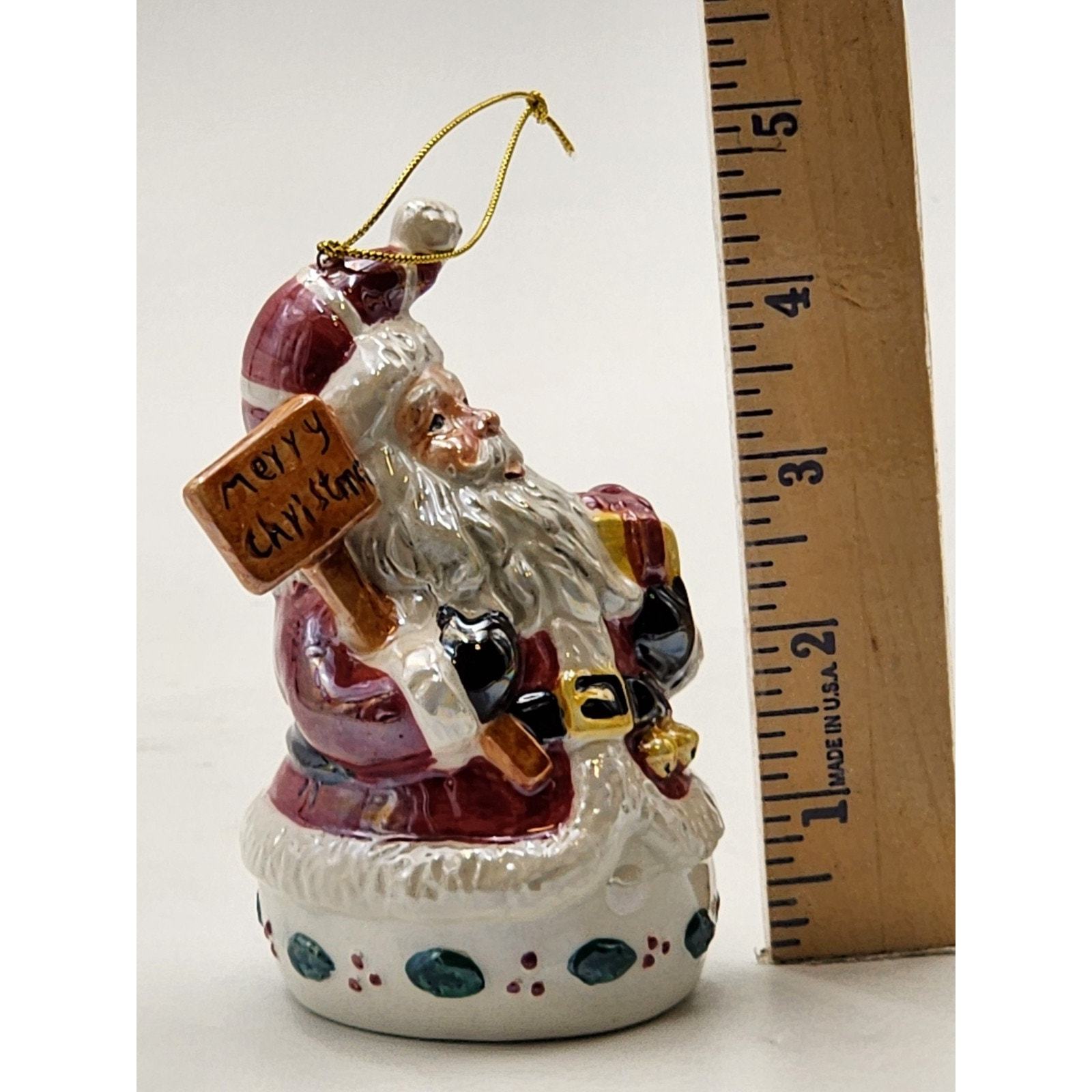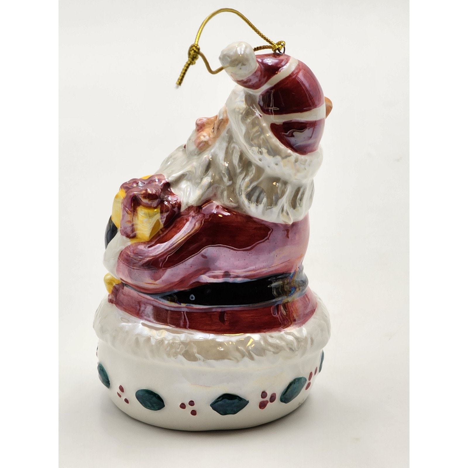 Vtg Iridescent Glazed Ceramic Santa with Merry Christmas Sign and Gift Ornament