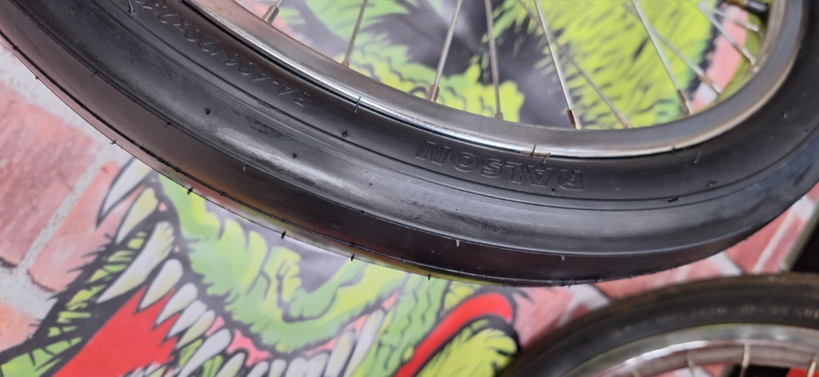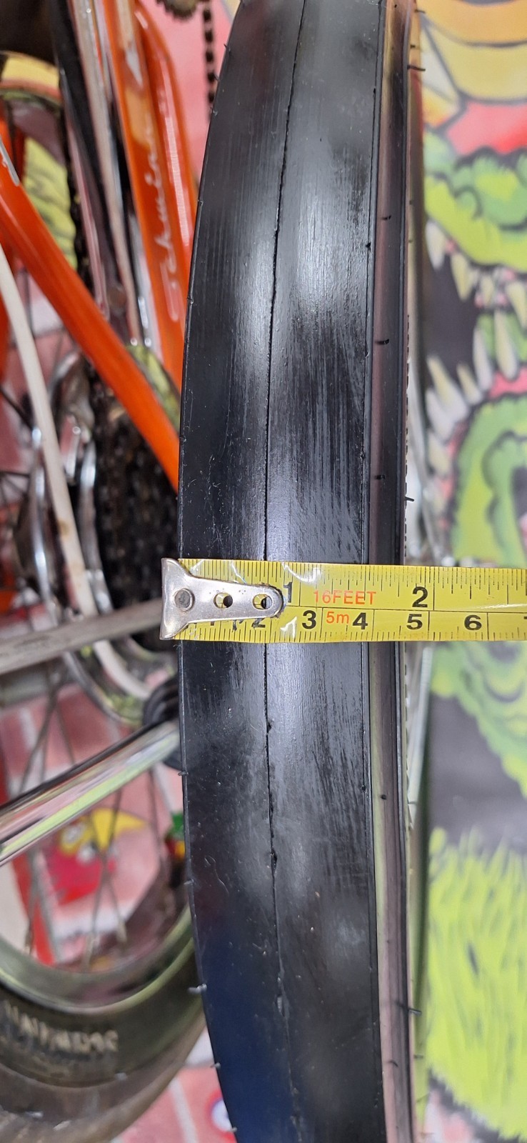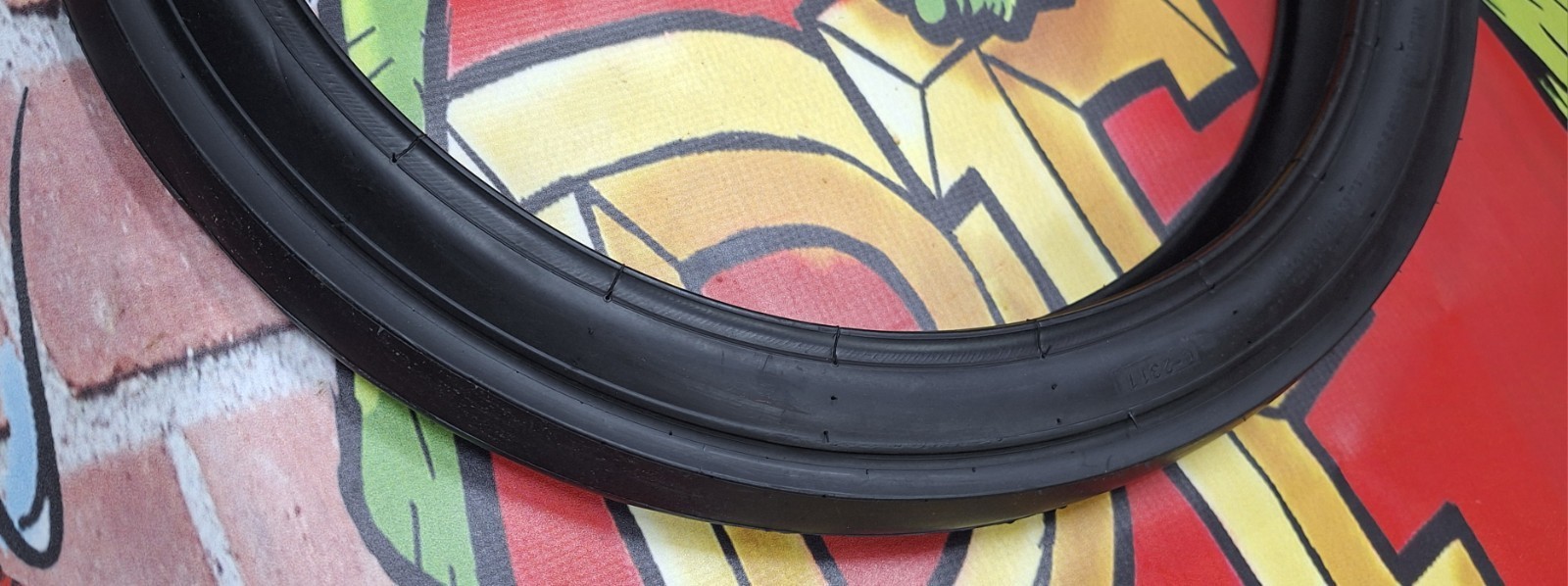 Made by FR Fattie, the tire is known for its high quality and durability making it a valuable addition to any vintage bicycle enthusiast's collection. The slick tire provides a smooth and responsive ride, perfect for collectors looking to restore or complete their classic muscle bike.