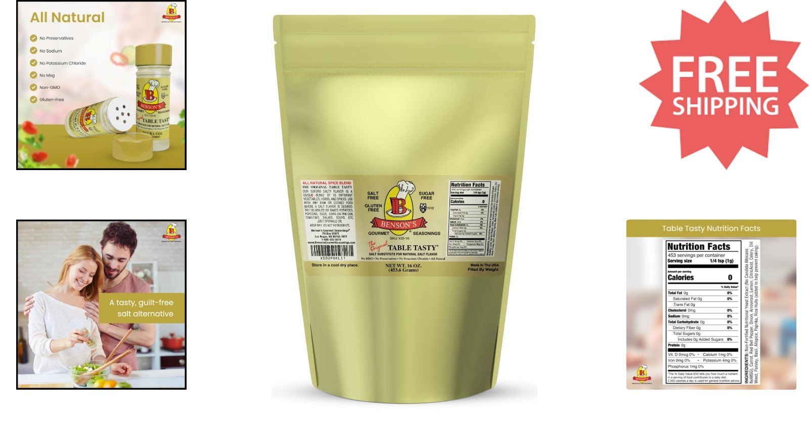 Benson?s Table Tasty Salt Substitute - Gluten-Free Gourmet Seasoning, 1 lb