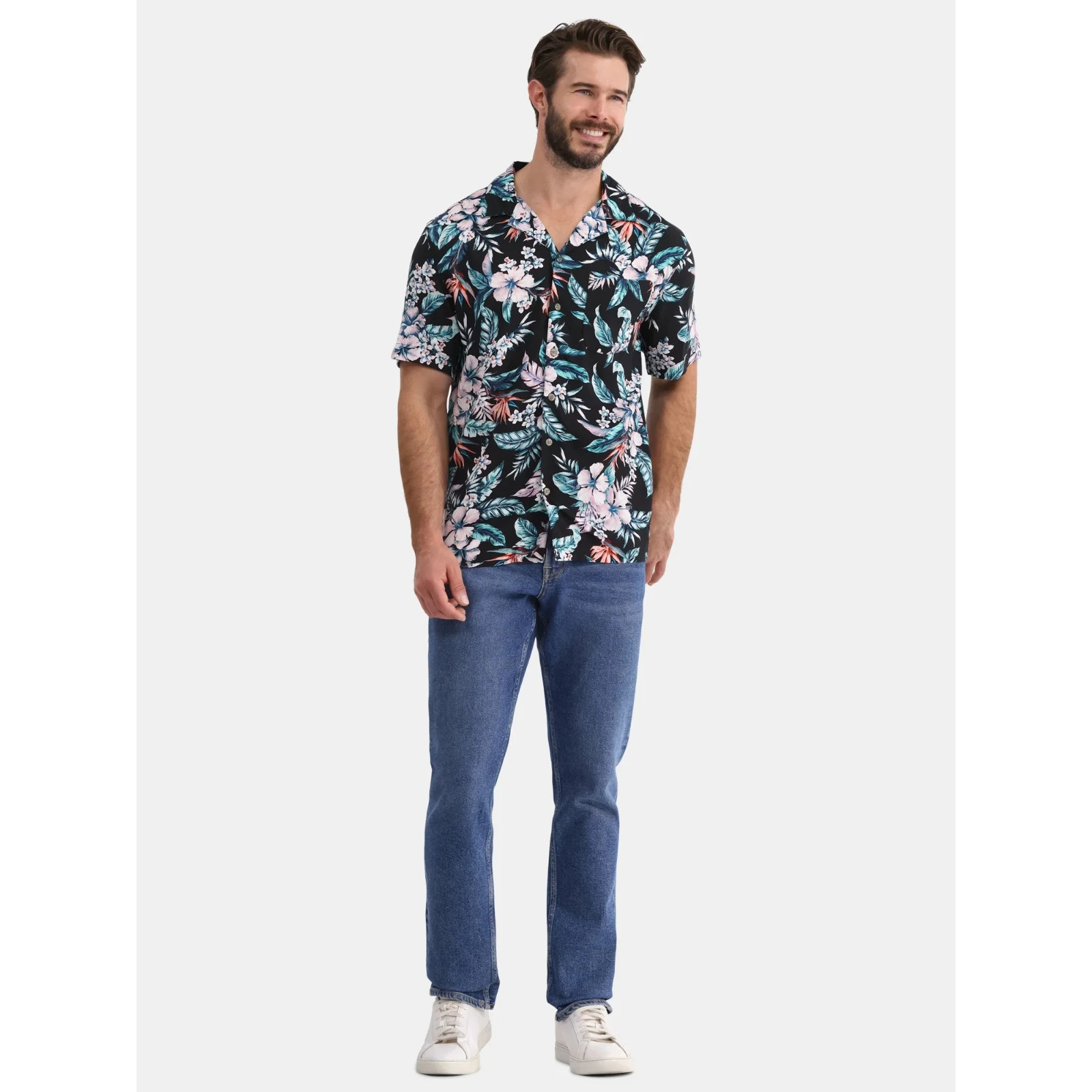 George Men's Men?s Camp Shirt, Black Soot Floral Size M(38-40)