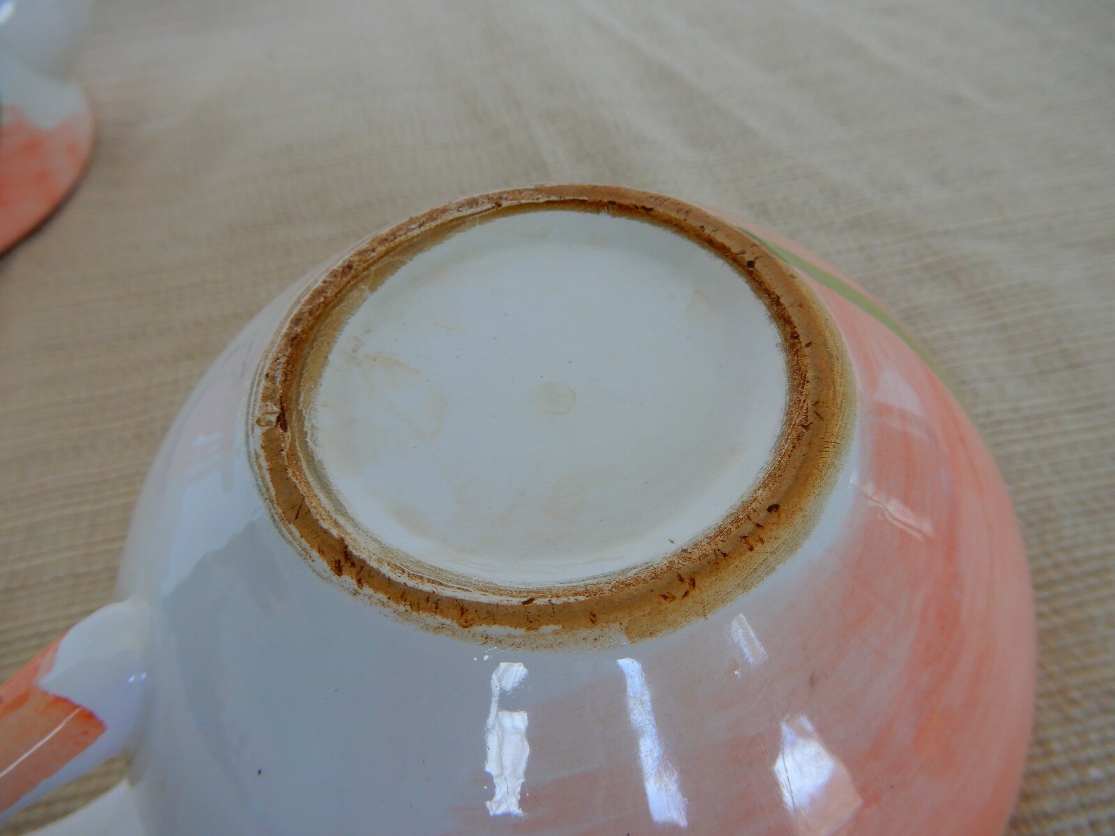 One tiny chip in the lid. Otherwise perfect. Lovely design. Wear and imperfections consistent with age and being handled. Please carefully examine all pictures before purchasing. The pictures are an important part of the description, and usually include important measurements. Items are in good pre-owned condition unless otherwise noted.