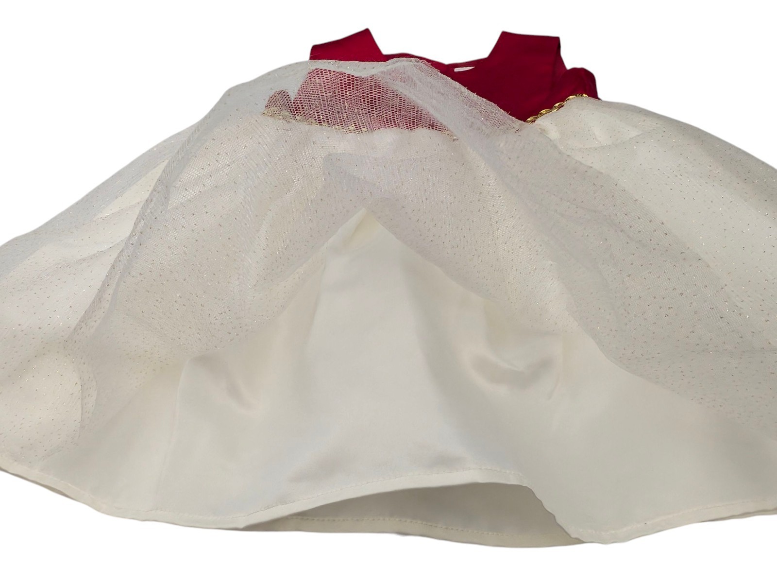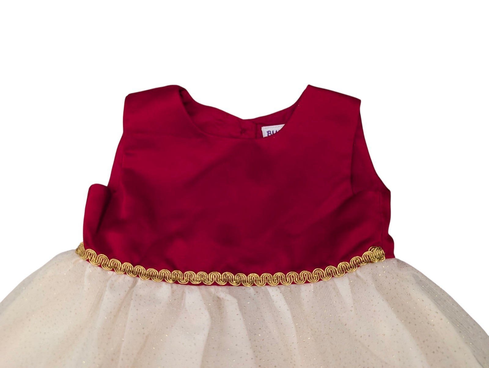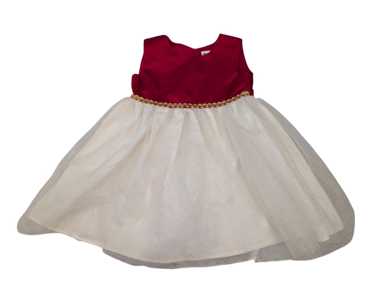 This is an absolutely adorable blueberri boulevard Toddler girls holiday themed dress. A size 3T. Red satin on top with gold trim around the waist. Bottom has gold glitter style tulle. Perfect for Christmas or holiday themed party. Excellent condition