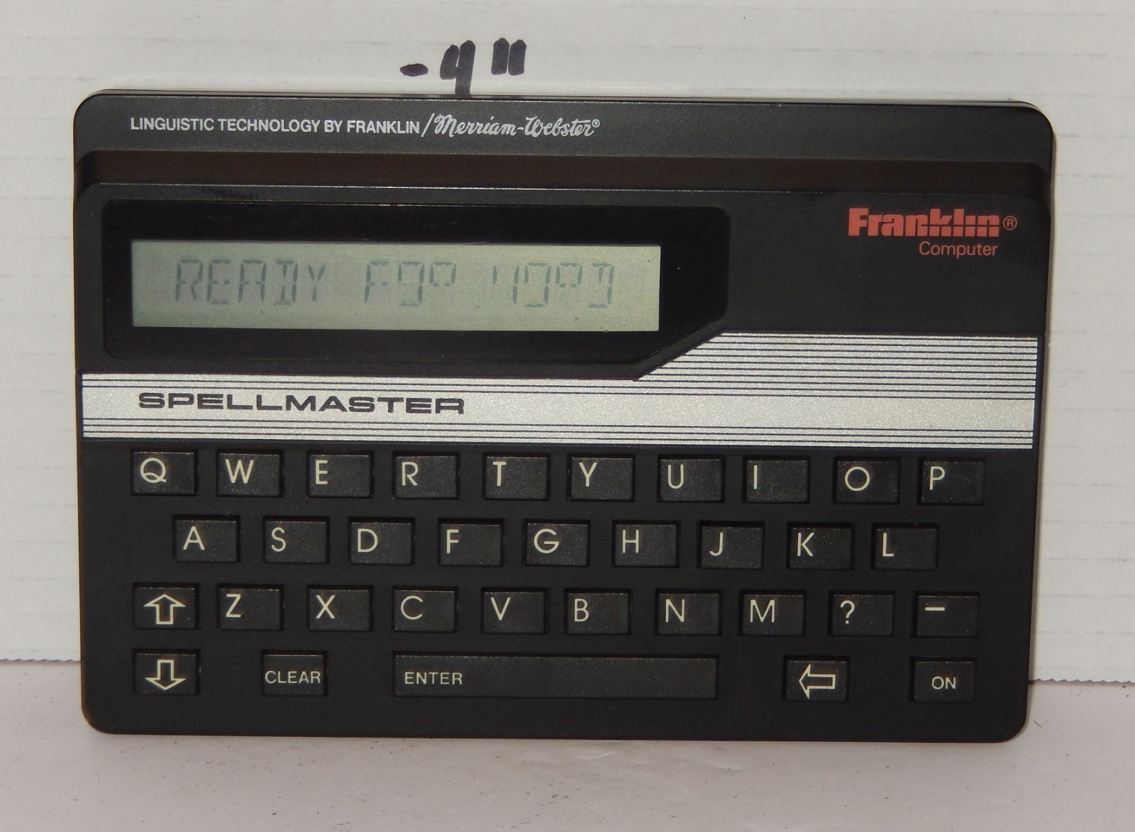 For Sale is a 1988 Franklin Computer Spellmaster SA-103 Electronic Dictionary Merriam-Webster. it in good used condition as seen in the pictures provided what you see is what you will receive. Has been tested and works. Please ask Any and All Questions prior to purchasing. Fast Same or Next day shipping with Free Delivery Confirmation within the U.S. Payment Due within 7 days of purchase (if you need more time please let us know In advance) we love to combine shipping is always a Yes and Most of the time Additional Items Ship for free.