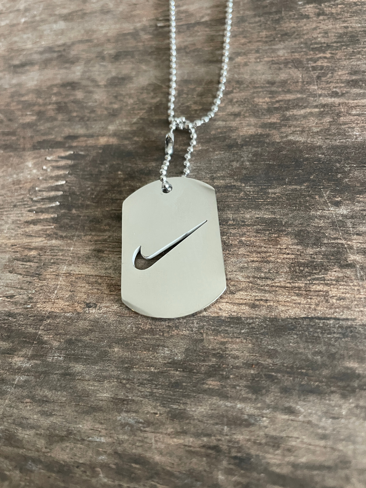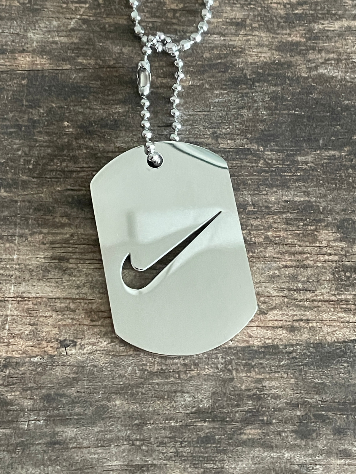 NEW Nike SILVER NECKLACE Stainless Steel 24" CHAIN DOGTAG ADJUSTER SWOOSH