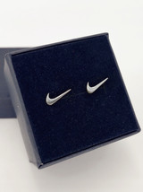 Nike Swoosh Silver - Plated Metal Stud Earrings, Pair, For Men or Women