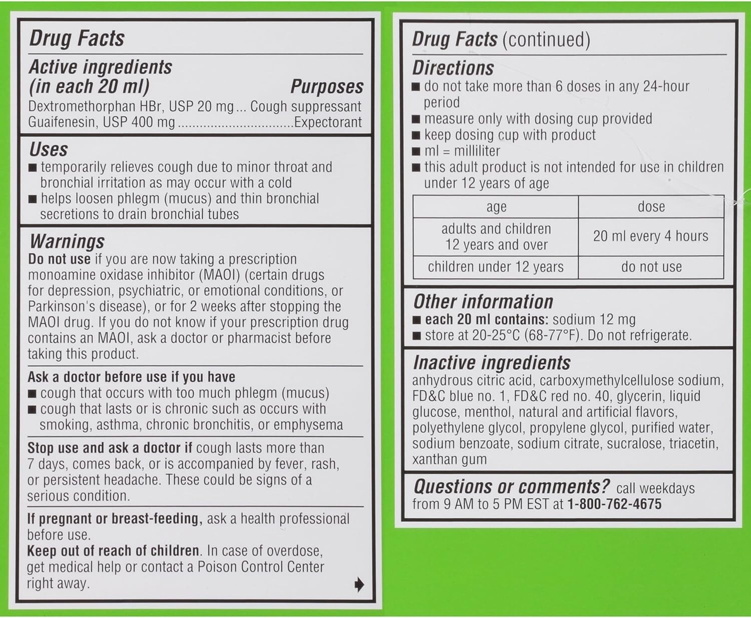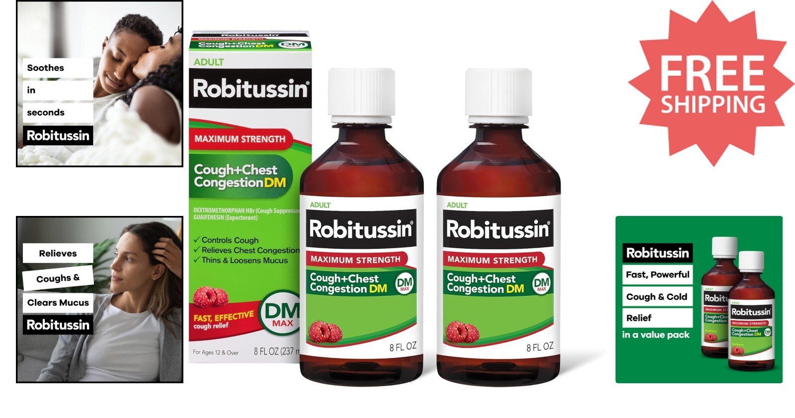 Robitussin Maximum Strength Cough Plus Chest Congestion DM comes in two convenient 8 fl oz bottles, offering powerful relief from cough and chest congestion. This raspberry-flavored syrup combines a cough suppressant with an expectorant, effectively alleviating coughs and loosening mucus for productive coughing. Suitable for adults and children 12 and older, it provides fast, daytime relief that helps your voice be heard again. Each dose of 20 mL can be taken every four hours, with a maximum of six doses in 24 hours. Trust Robitussin for quick and effective cold and cough relief. To ensure fast and reliable delivery, we work with multiple fulfillment partners and suppliers. Depending on availability and location, your order may ship from different warehouses or arrive in packaging that varies from item to item. Tracking details are typically provided shortly after shipment, and customer satisfaction remains our top priority. Please note that due to carrier policies and regional regulations, certain items may not be eligible for delivery to specific states or territories.