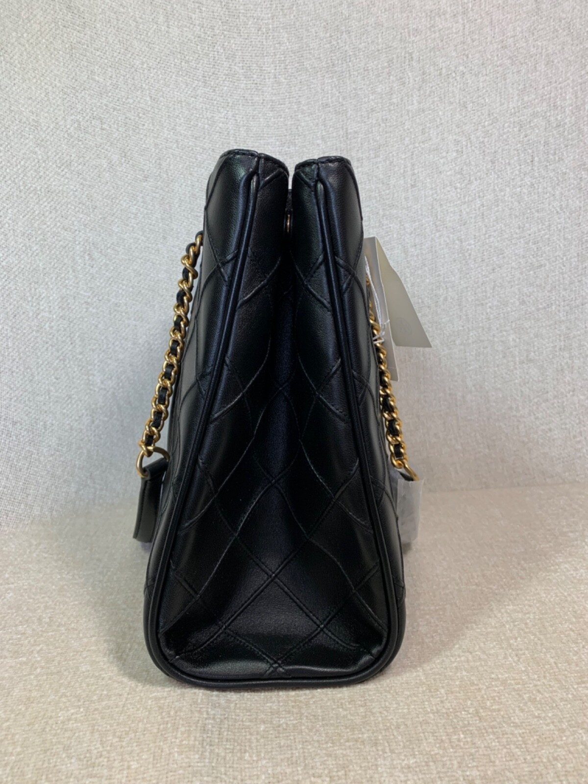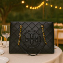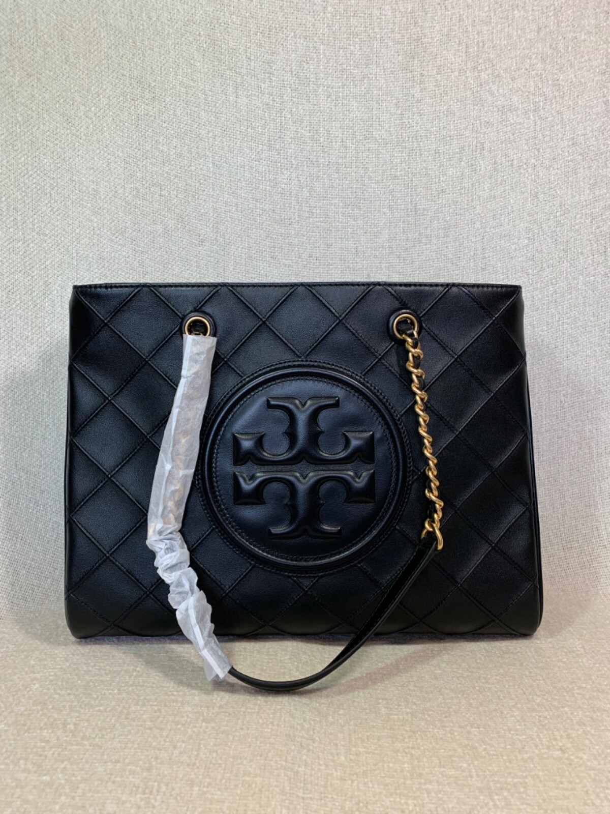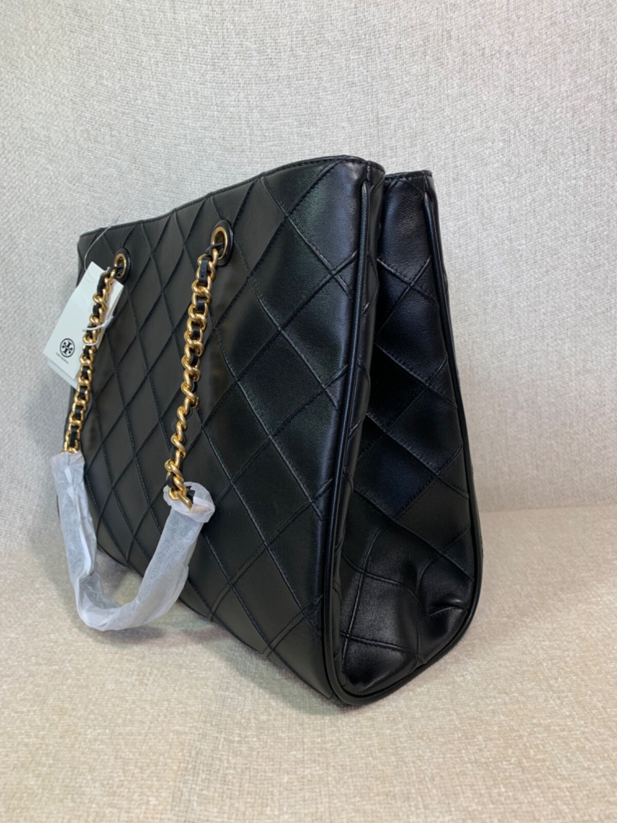 NEW Tory Burch Soft Fleming Chain Black Quilted Leather Tote/Shoulder Bag - AUTH