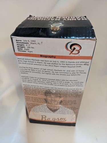 Up for sale is a new in box Manny Machado Minor League Baysox SGA Garden Gnome San Diego Padres.