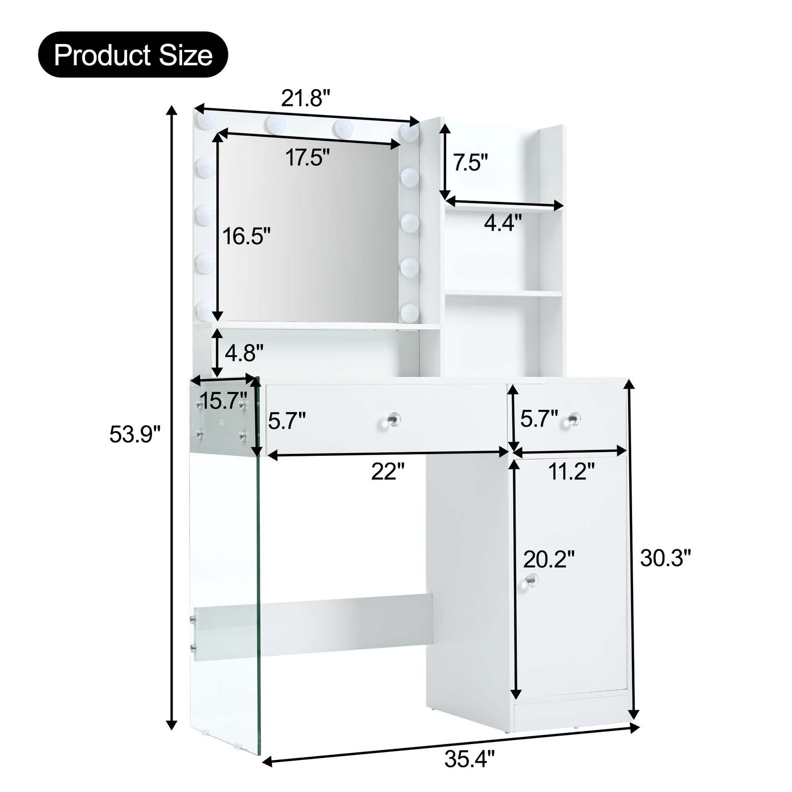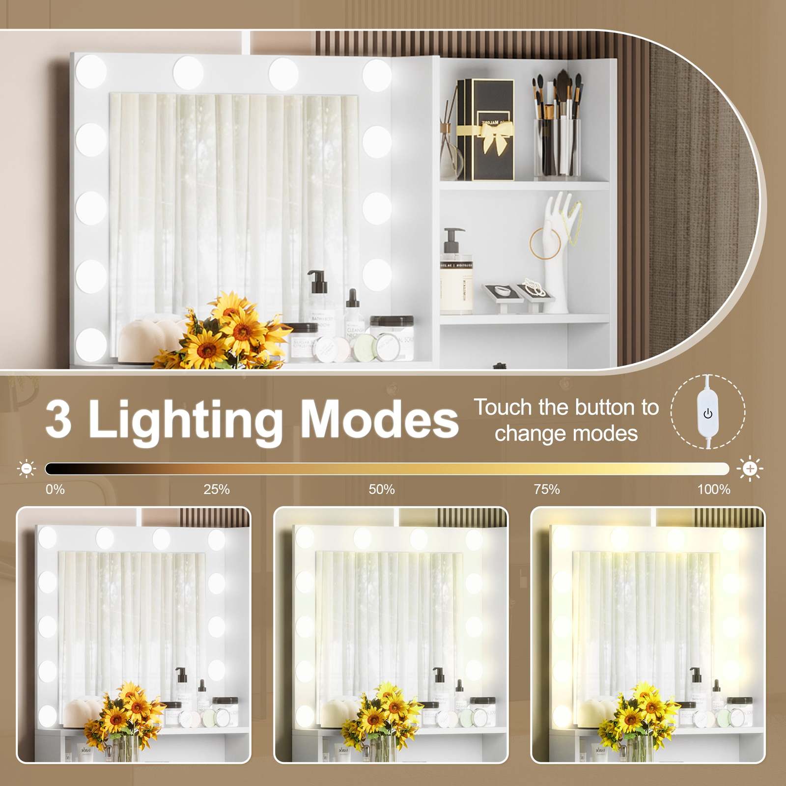 12 Hollywood Lights: This vanity features a high-definition makeup mirror and 12 Hollywood-style LED bulbs with 3 light modes (warm, natural, and cool) and adjustable brightness. Whether you're getting ready for a special event or doing your everyday makeup, you can easily customize the lighting to suit your look.