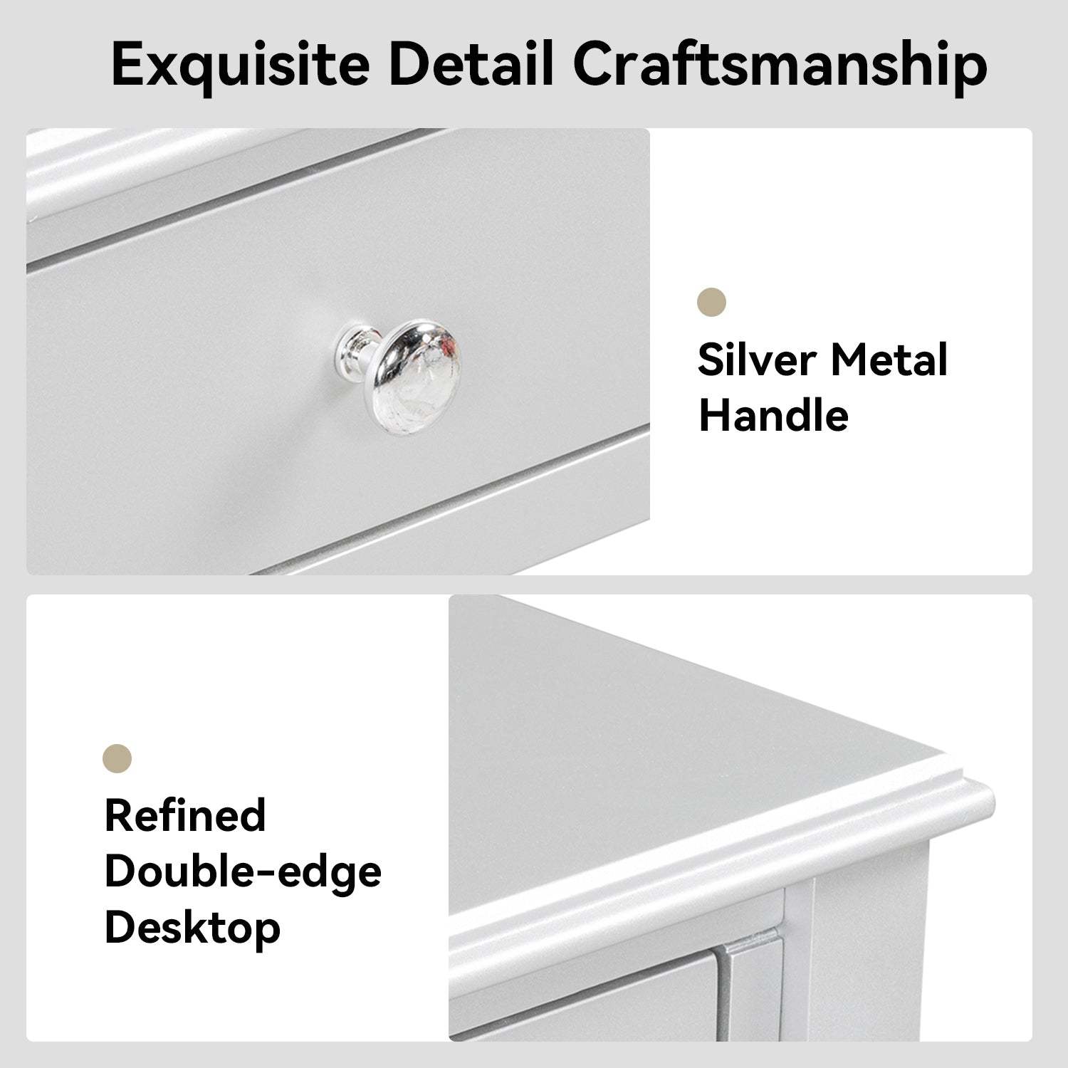 Luxury Silver Vanity Desk with Oval Mirror, 3-Drawer Jewelry Storage