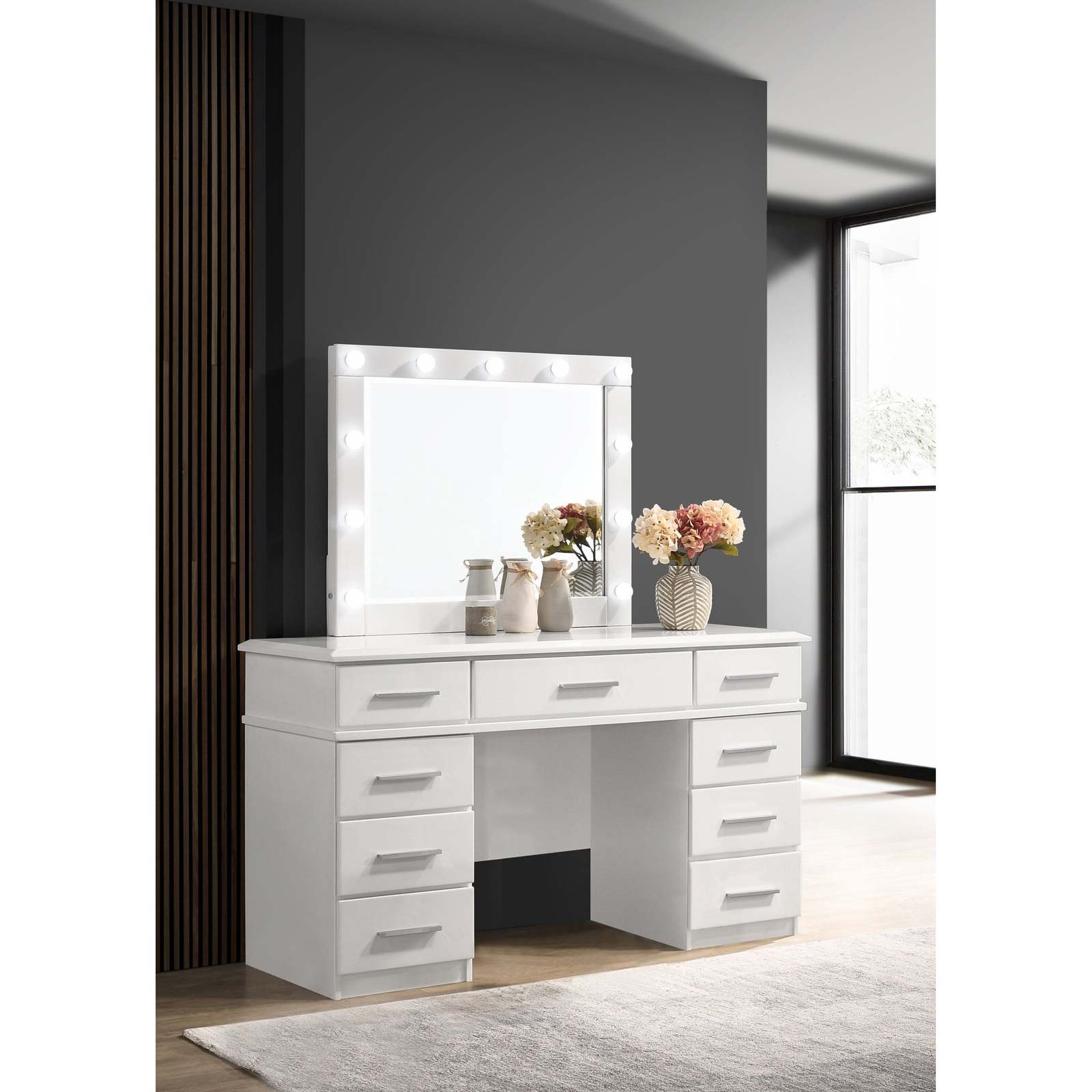 Sarah Glossy White 9-Drawer Vanity Desk for Makeup & Dressing