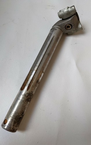 A vendre est une tige de selle Sugino SP-KC d'occasion 27 mm x 230 mm en aluminium avec une echelle de tournee classique.