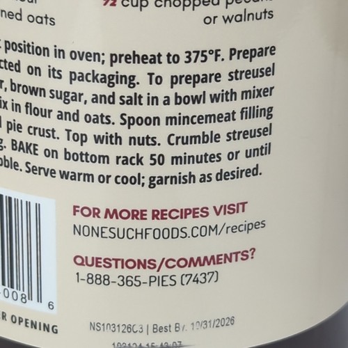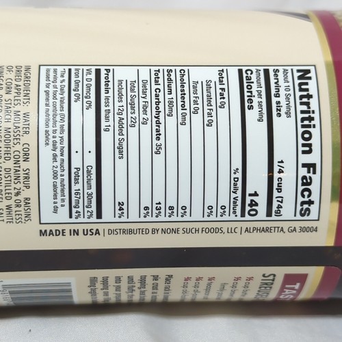 Enjoy the convenience of a product that's ready to use with a 1/4 cup serving size, and savor the richness with a moderate 140 calories per serving. Whether you're filling pies, tarts, or simply spooning it over ice cream, this None Such MinceMeat is manufactured in the United States and guarantees an authentic taste that has stood the test of time.