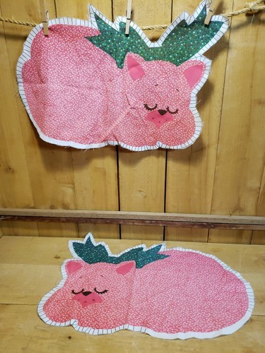 Vintage Pink Kitty Fabric Material Pillow Panel Cut Sew Stuff 1970s NOS