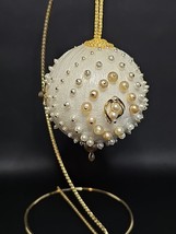 Vintage Handmade Push Pin Beaded Christmas Ornaments White Goldtone Pearlescent