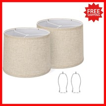 Set of 2 Beige Drum Lampshades - 11.6" Top, 12.6" Bottom, Handcrafted Elegance