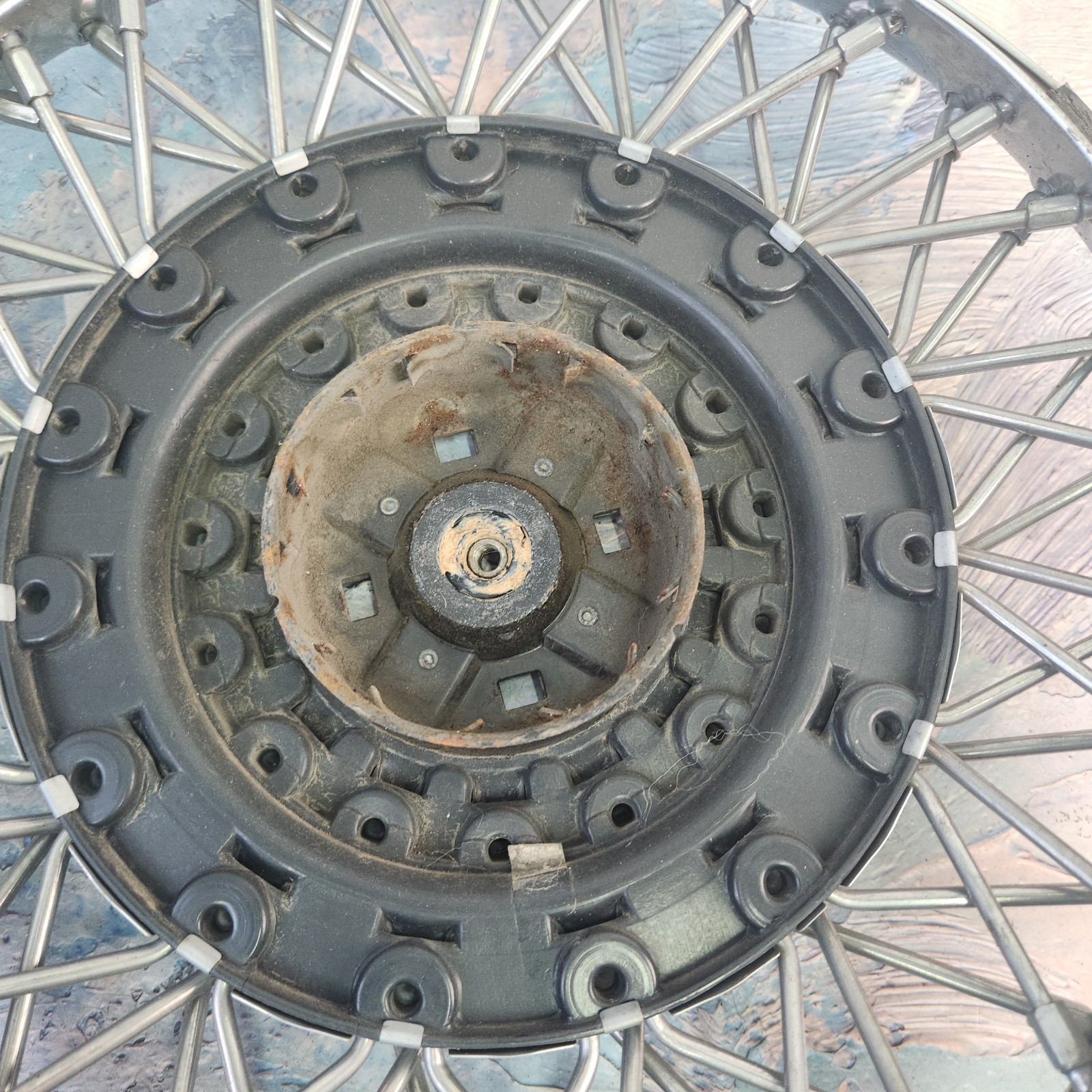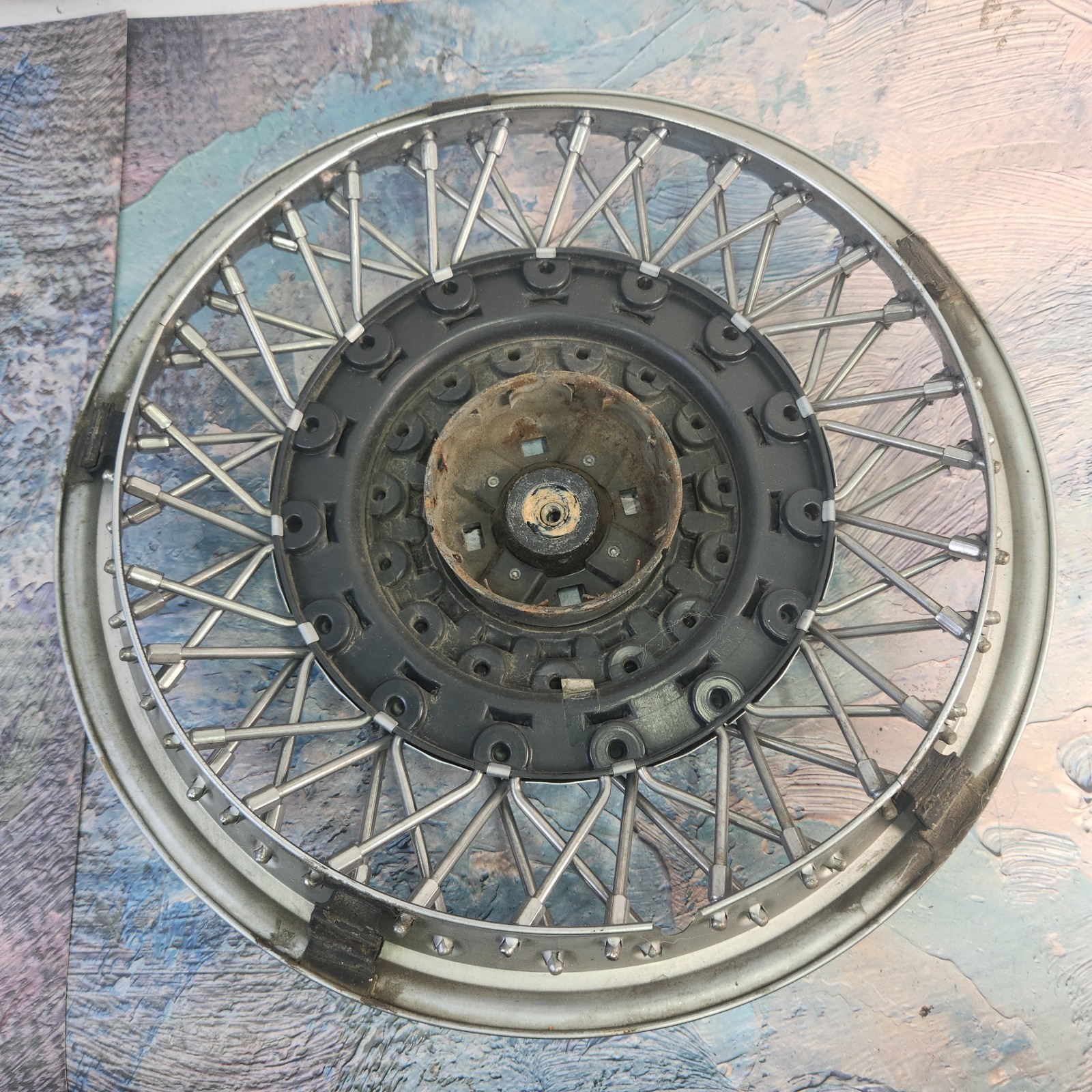 Exact item is shown. In good used condition. Inner diameter 13 inches. Outer diameter 15 inches. Item weight 3 lbs. Some dents around the outer edge, as shown. Made in USA. Please review our business policies in our store for information regarding returns, shipping and warranties.