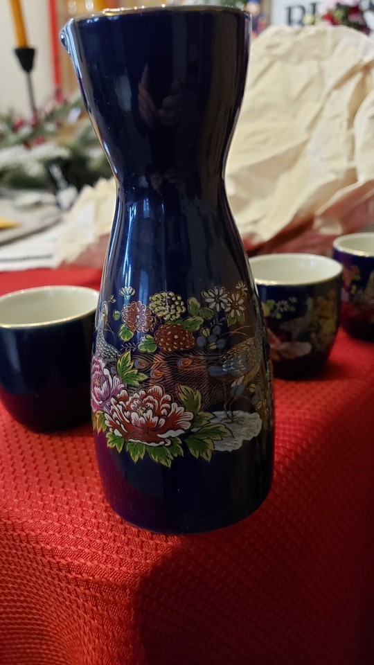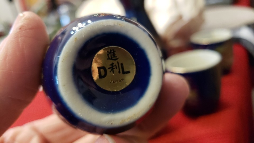 Service a Sake Vintage Japon Ensemble Japonais 5 Pieces Oiseau Grue Bleue Florale Porcelaine produit par - DL au Japon c'est un ensemble genial. Vous obtenez 4 petites tasses (contiennent probablement 1 a 1,5 once) et le pichet. J'ai obtenu cela lors d'une vente de propriete aupres d'une riche dame agee qui a voyage dans des terrains asiatiques dans les annees 80. Tous ses objets dataient de 1990 ou d?avant. Je ne connais pas l'age exact de ceux-ci. EXPEDITION GRATUITE Sur cet ensemble delicat.