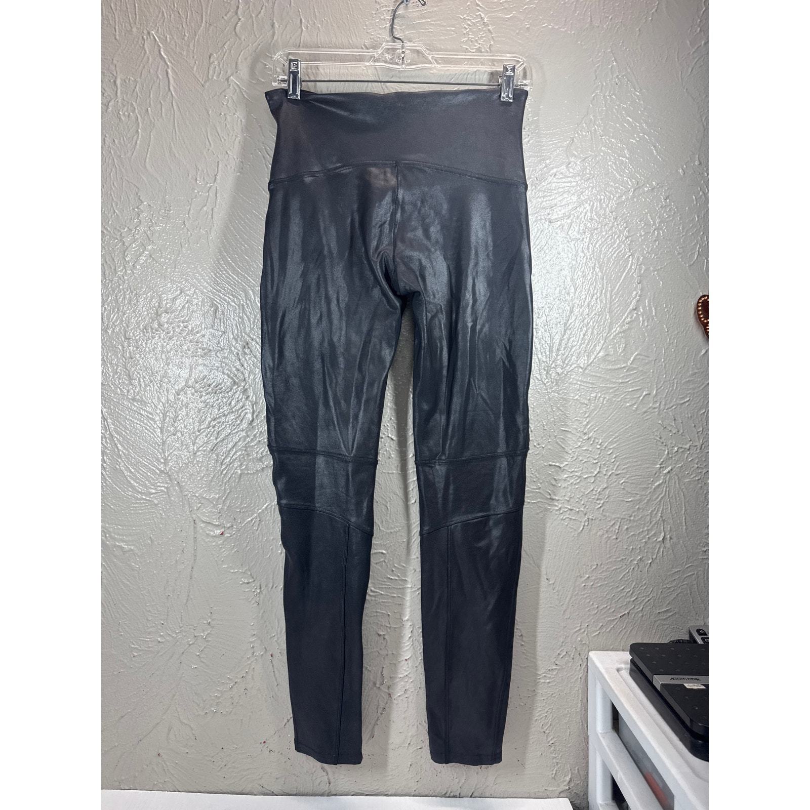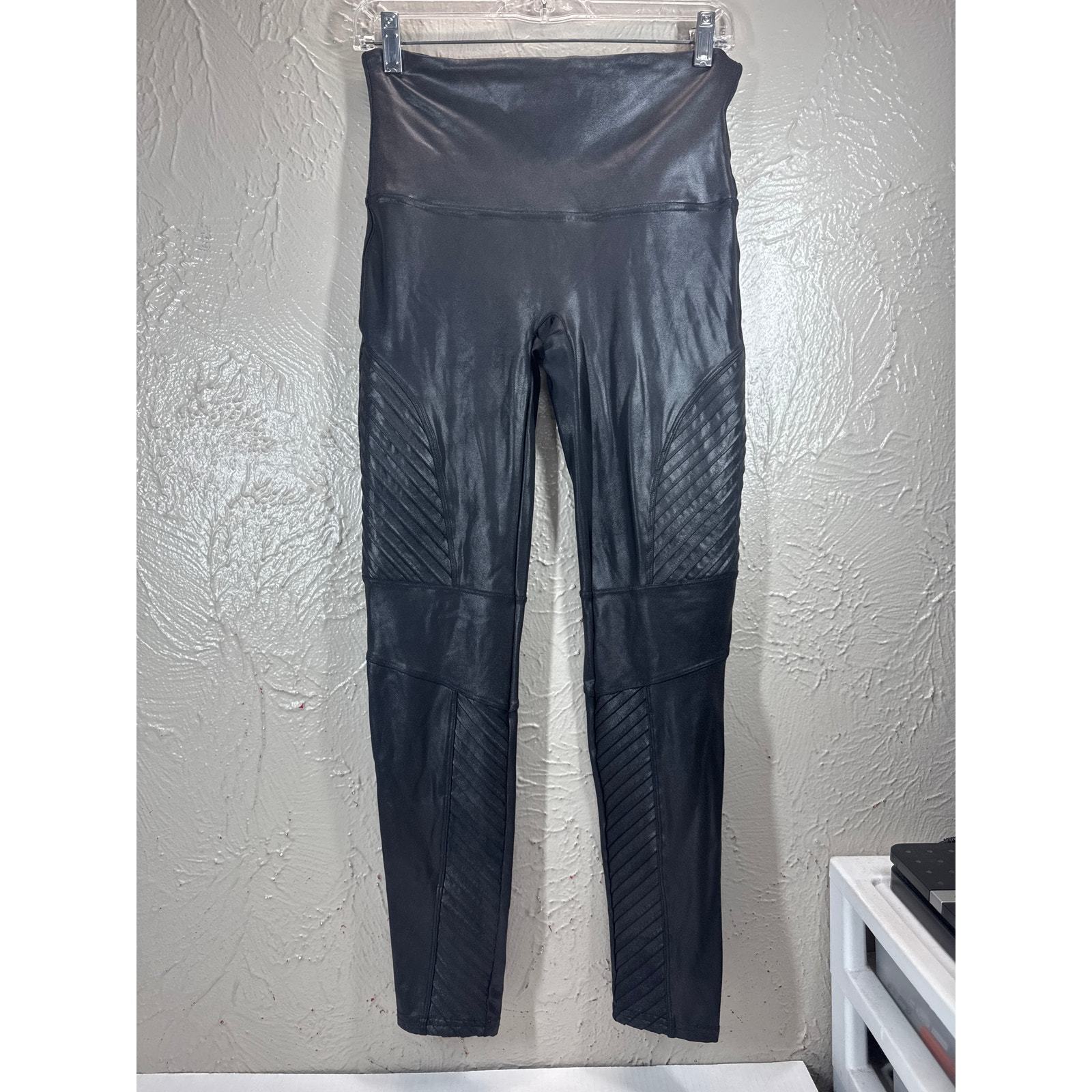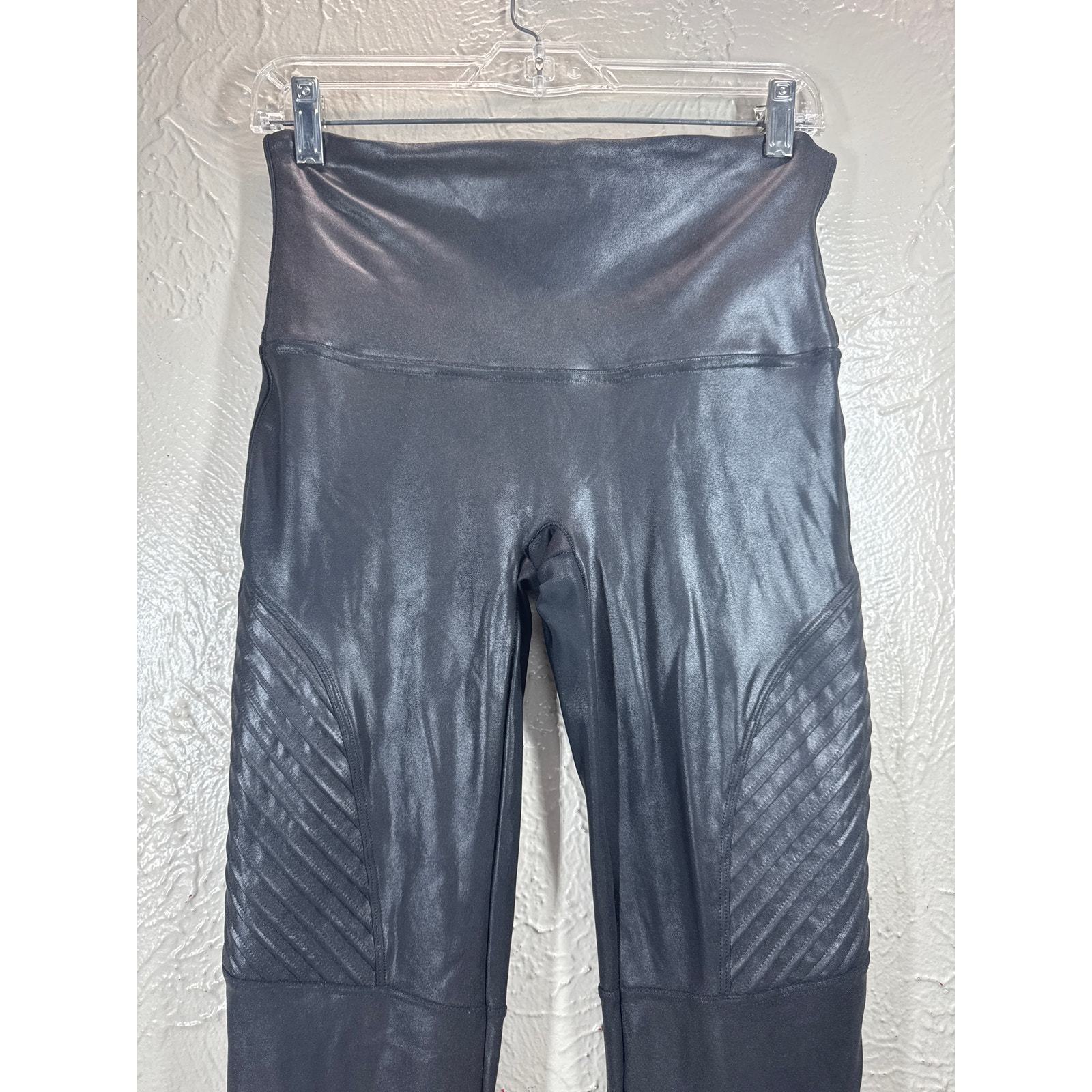Spanx Women's Black Faux Leather Moto Leggings Shaping High Rise Size XL