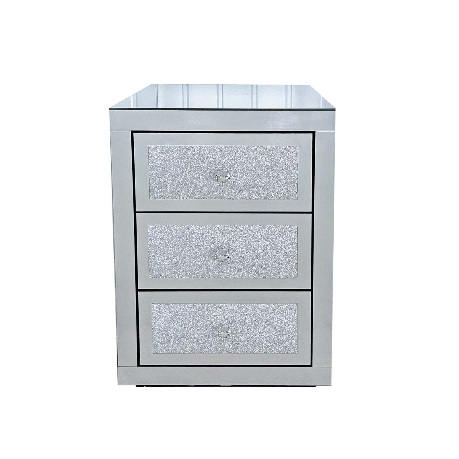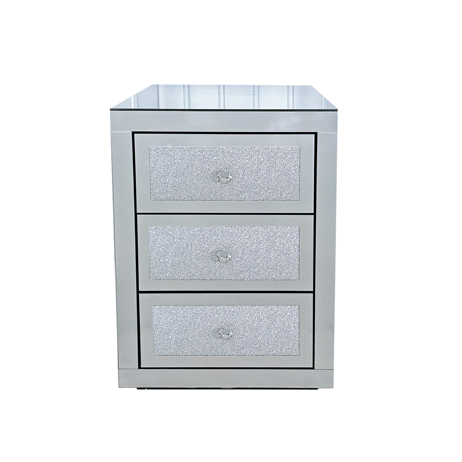 Place of Origin #originPlace# Main Color Silver Main Material MDF+glass Product Style Modern Number of Drawers 3 Drawers Features Glass Top Product Type Bedside Cabinet Finish Mirrored Use Case Bedroom Dangerous Goods #dangerFlag#
