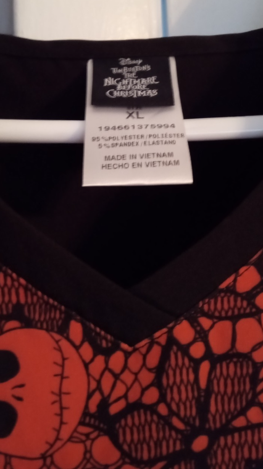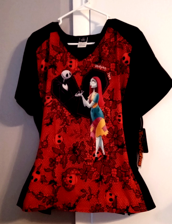 Tooniforms Disney Nightmare Before Christmas Cherokee Scrubs XL- V Neck Top TF63