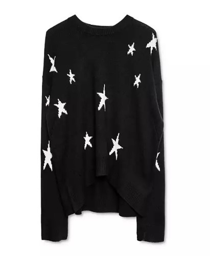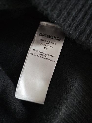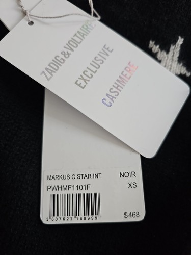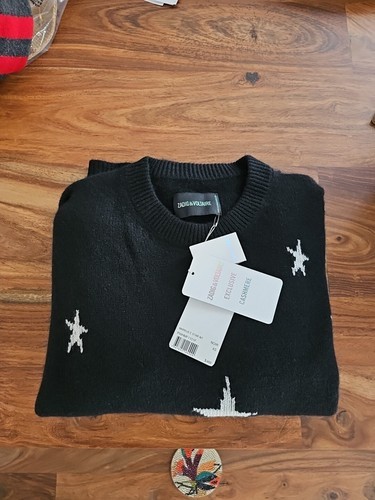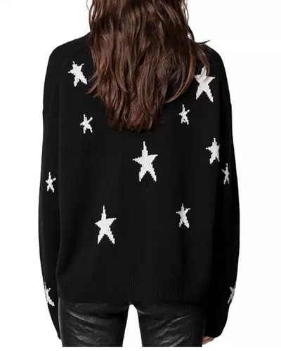 New Zadig & Voltaire Markus C Star 100% Cashmere Sweater Black White Sz XS, NWT!