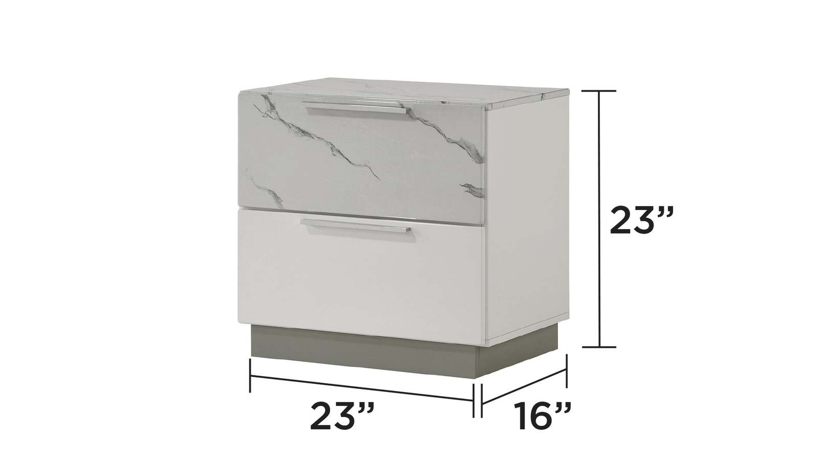Elevate your bedroom's convenience and style with this chic modern nightstand. The piece features a sleek white lacquer finish complemented by marble-like accents that exude sophistication and luxury. With two smooth-operating drawers, this nightstand offers ample storage for your bedtime essentials. The top drawer is lined with red velvet, providing a plush compartment that's perfect for storing delicate items like jewelry or electronic devices. The compact design ensures it fits neatly beside your bed, making it both a functional storage solution and a stylish addition to your bedroom decor.