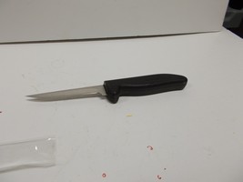 Black Handle Skinning Knife: the overall length of the knife is just over 9" with a hard straight handle. The blade is 4" long with a rounded tip making it a universal style skinning knife. This knife is easily sharpened with the various sharpening tools. This would be considered an economy style knife.