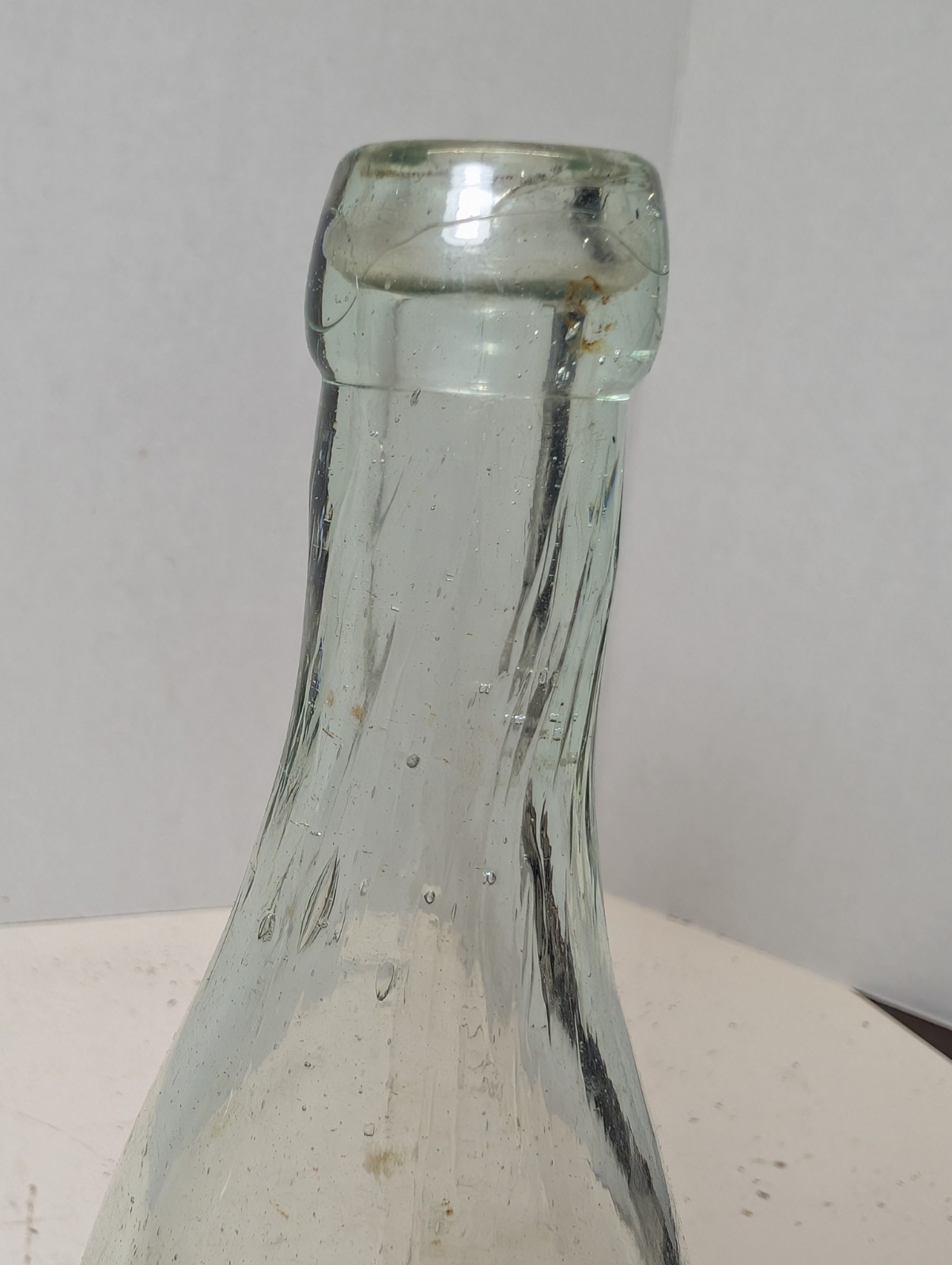 This is a pretty hard to find bottle. There are no chips or cracks other than there are some faint cracks, I don't even know if you would call them cracks near the opening. Almost like they were there when it was made. See pics for best condition description.