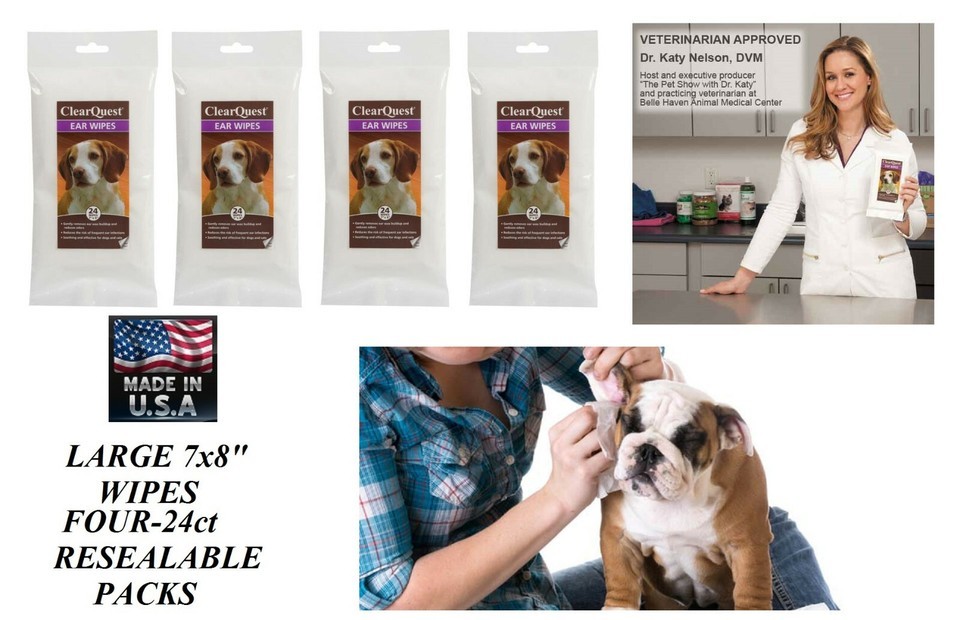 96 pc PET EAR CLEANSING Large 7x8" WIPES Pads DOG CAT Grooming Cleaning Cleaner