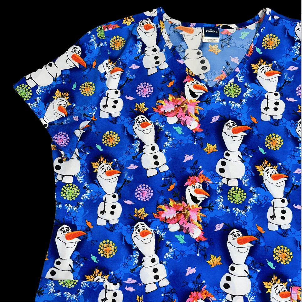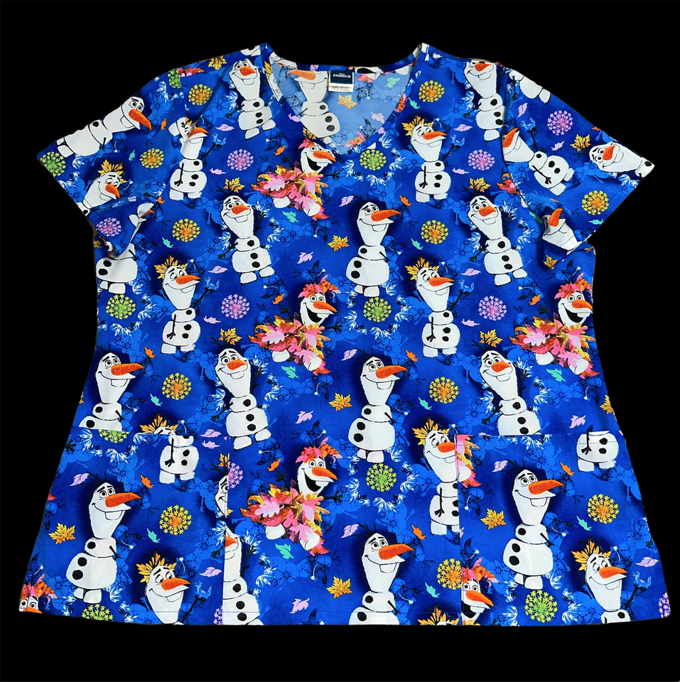 Disney's Frozen II Olaf Leaves Scrub Top Shirt Size 3XL Blue White Nurse Vet